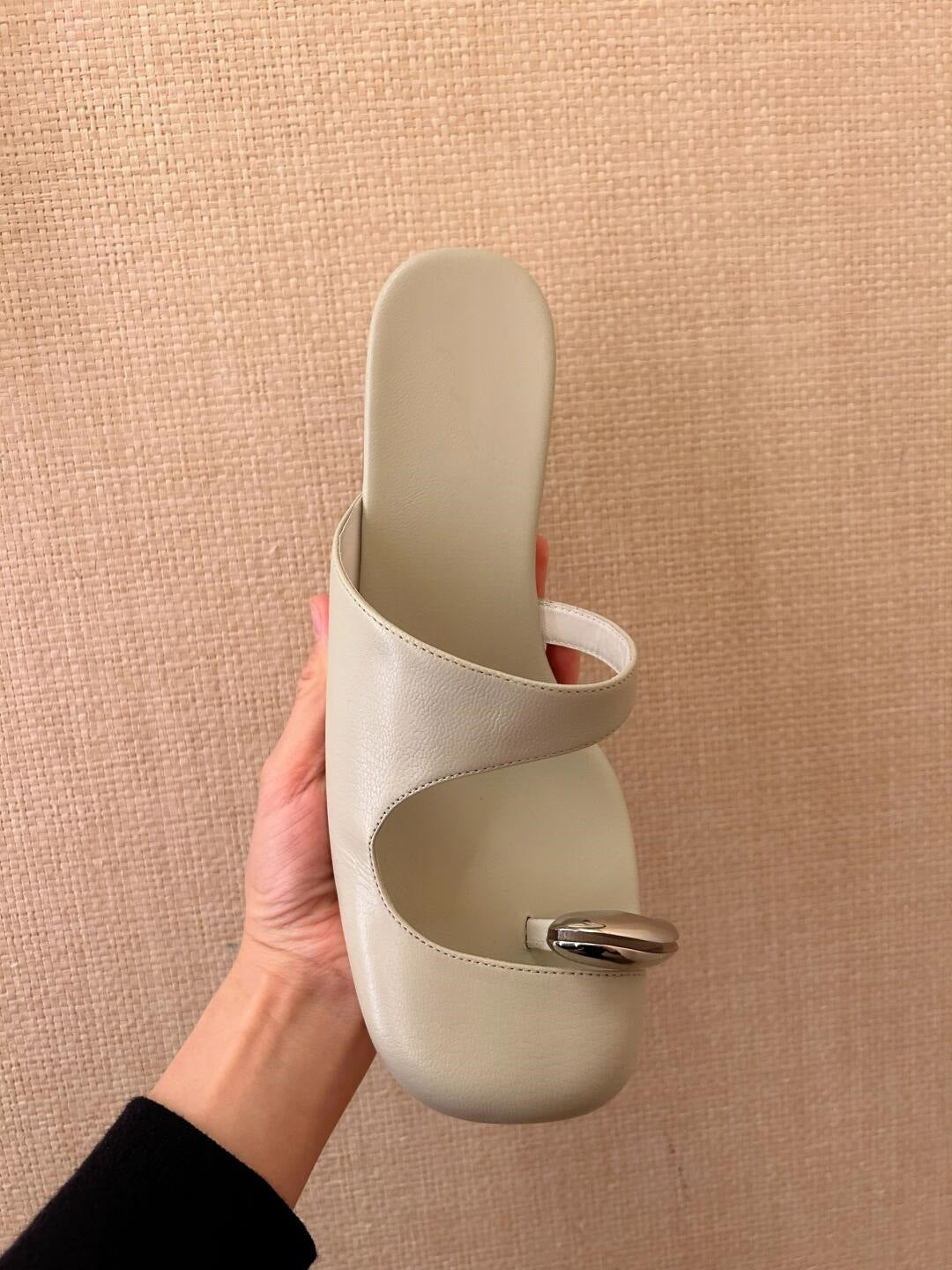 شبشب جلدي حكيمي مع لمسات بيضاوية فضية – لييرا