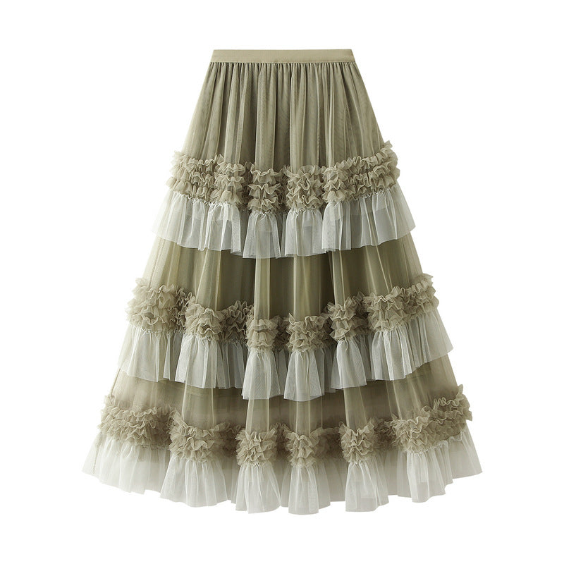 تنورة طويلة من التول متعددة الطبقات مع طبقات من الكشكشة - أميلي