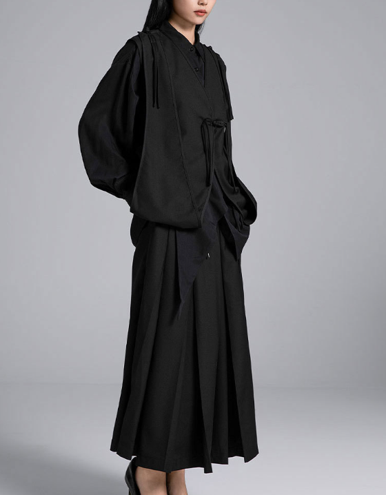 بدلة كستنائية أنيقة، مصممة خصيصاً، تتميز بتصميمها المنحوت، وأكتافها منظمة، وخصرها ضيق، وأزرارها الذهبية البارزة. نسقيها مع بنطال بقصة مستقيمة لإطلالة راقية، قوية، وأنيقة، مثالية للمناسبات الرسمية والأمسيات الراقية.