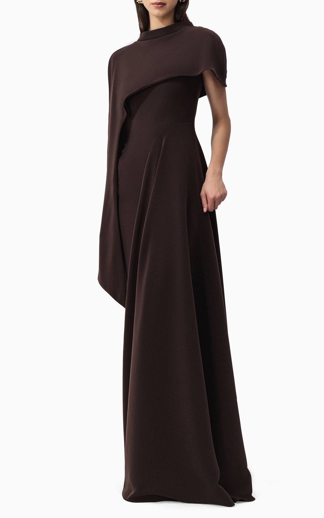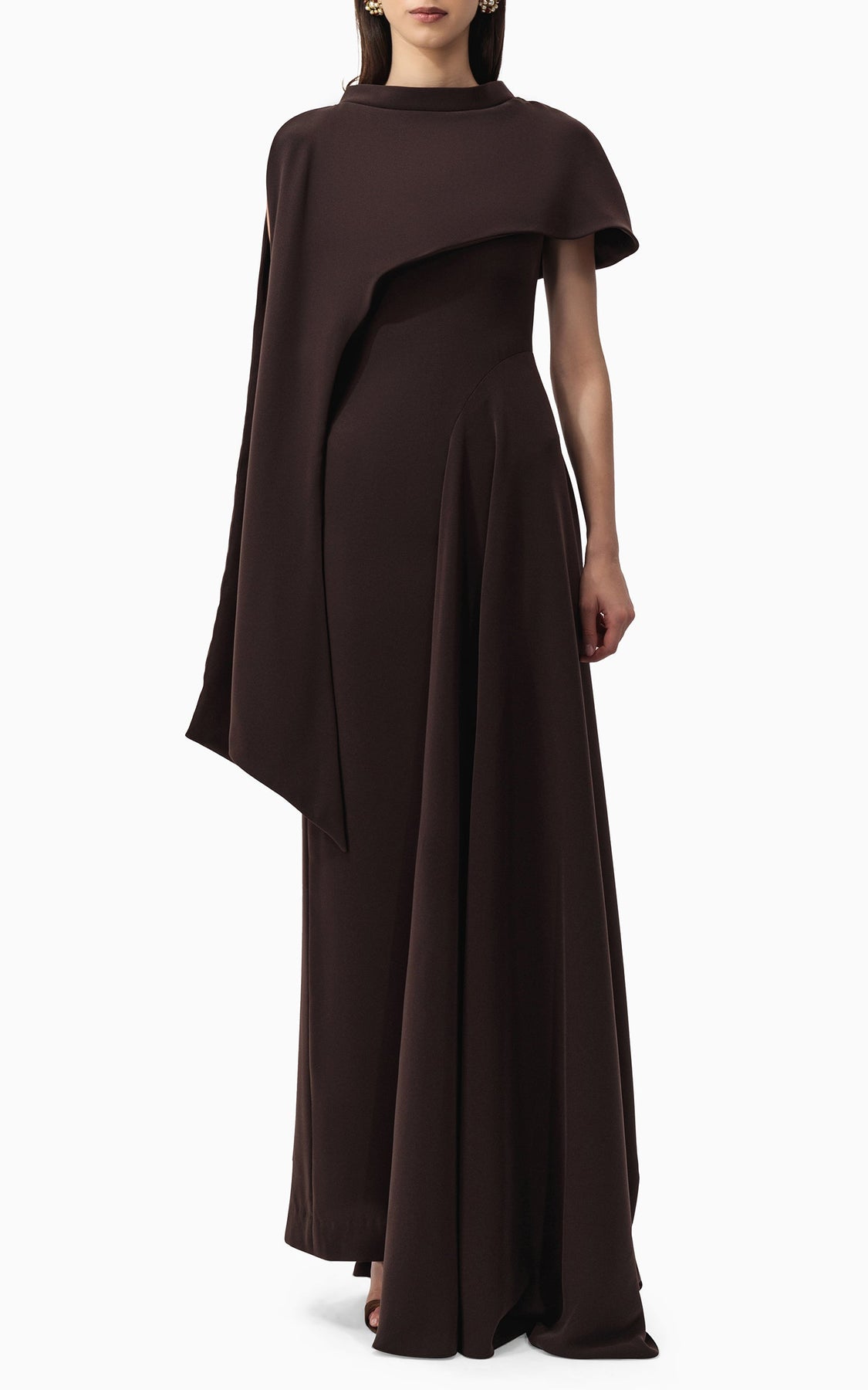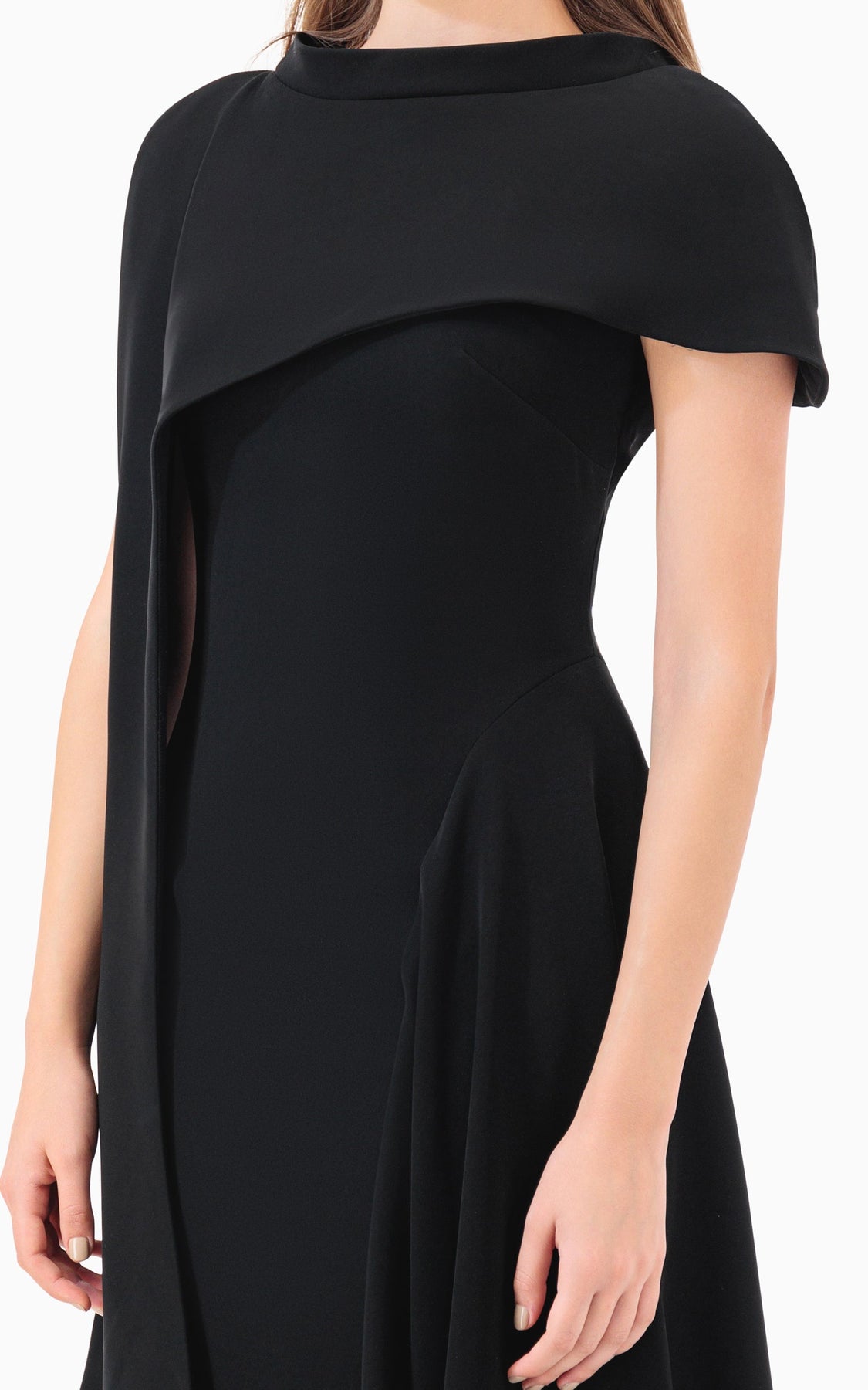 فستان سهرة أسود رائع، يتميز بفتحة رقبة غير متماثلة وغطاء كتف منحوت. يتدفق التصميم ليمنحكِ قصة طويلة تصل إلى الأرض مع أجزاء جانبية انسيابية، فيمزج بين البساطة العصرية والرقي الخالد لإطلالة أنيقة بكل بساطة.