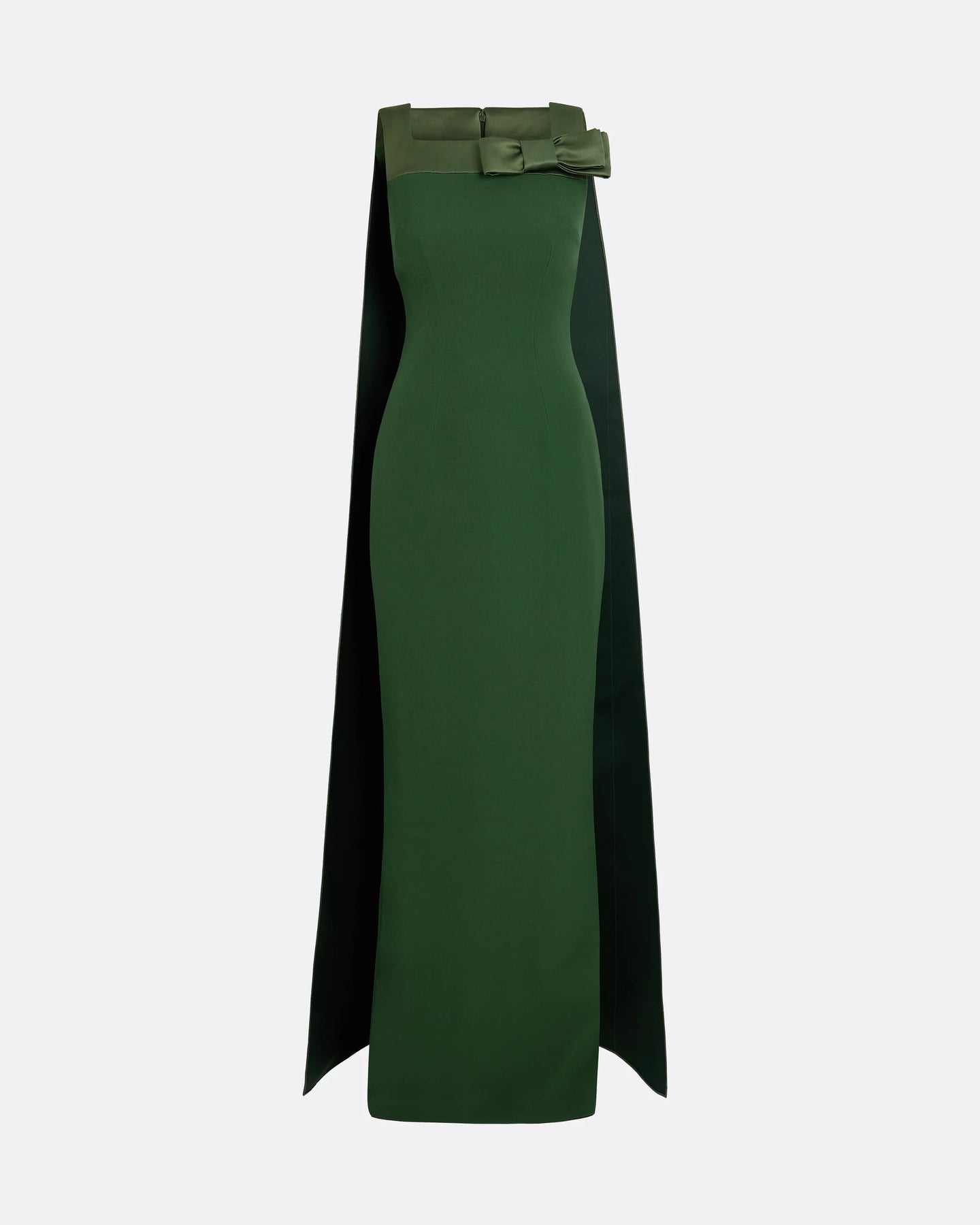 فستانٌ رائعٌ بلون أخضر طحلبيّ، بتصميمٍ عموديّ أنيق بدون أكمام، وياقة ساتان راقية، مزينة بفيونكة منحوتة. أنيق، بلمسة فنية، وجميل، مثاليّ للمناسبات المسائية الأنيقة.