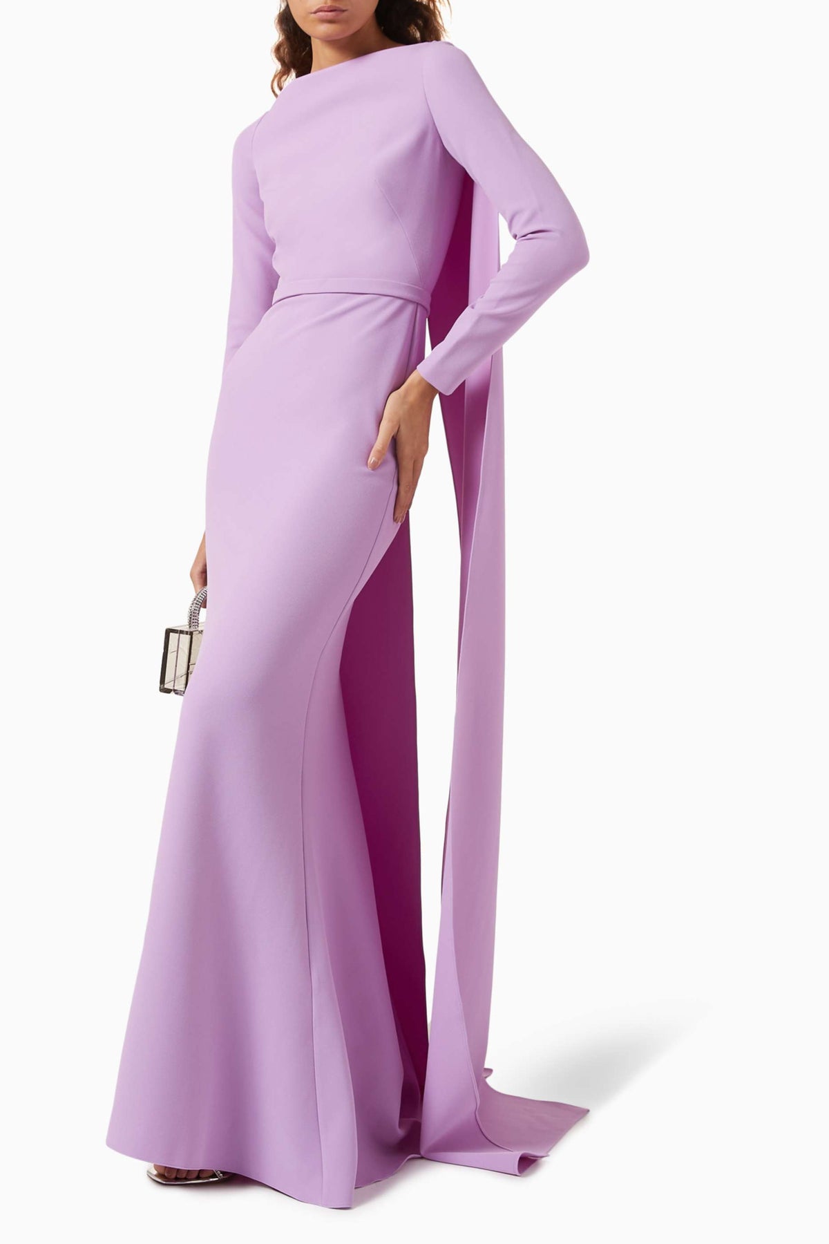 فستانٌ أرجوانيٌّ خلابٌ يتميز بتصميمٍ أنيقٍ ومنحوتٍ وكابٍ طويلٍ يصل إلى الأرض. مُصمّمٌ بأكمامٍ طويلةٍ وخصرٍ مشدود، يُضفي لمسةً ملكيةً عصريةً وأنوثةً خالدةً - مثاليٌّ لفعاليات السجادة الحمراء أو السهرات الأنيقة.