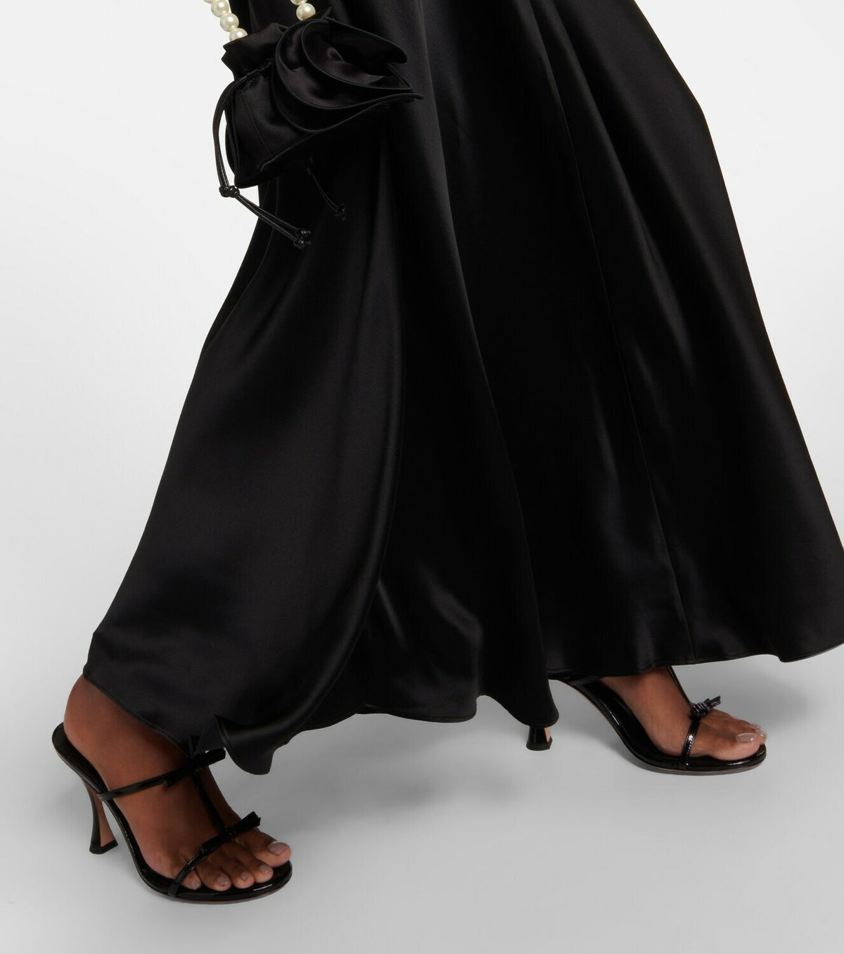 فستان سهرة أسود أنيق يمزج بين المخمل الفاخر والساتان اللامع. يتميز بأكتاف منفوخة أنيقة، وحواف دانتيل بيضاء رقيقة، وتنورة ساتان انسيابية على شكل حرف A، ليمنحكِ تصميمًا كلاسيكيًا ينبض بالرقي الكلاسيكي والرقي العصري.