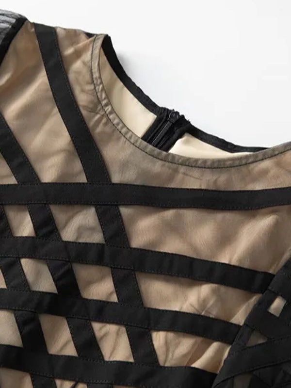 فستان ميدي أزرق داكن أنيق يتميز بصدرية شبكية هندسية وقصة ضيقة تُبرز قوام الفستان. مُصمم بحاشية حورية البحر الناعمة لإطلالة انسيابية أنيقة، ويجمع بين الجاذبية العصرية والأناقة الخالدة، مثالي للمناسبات المسائية أو حفلات الكوكتيل.
