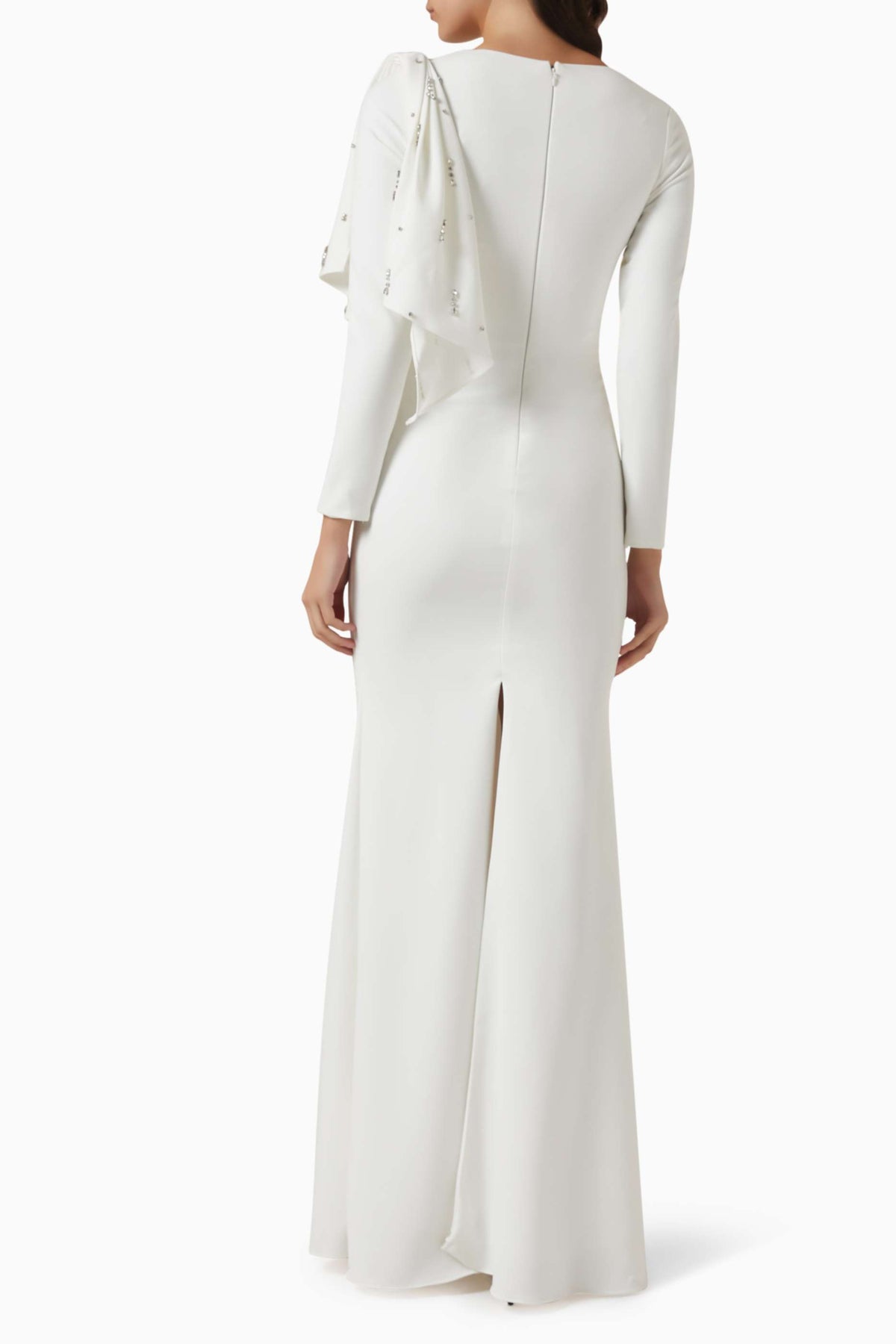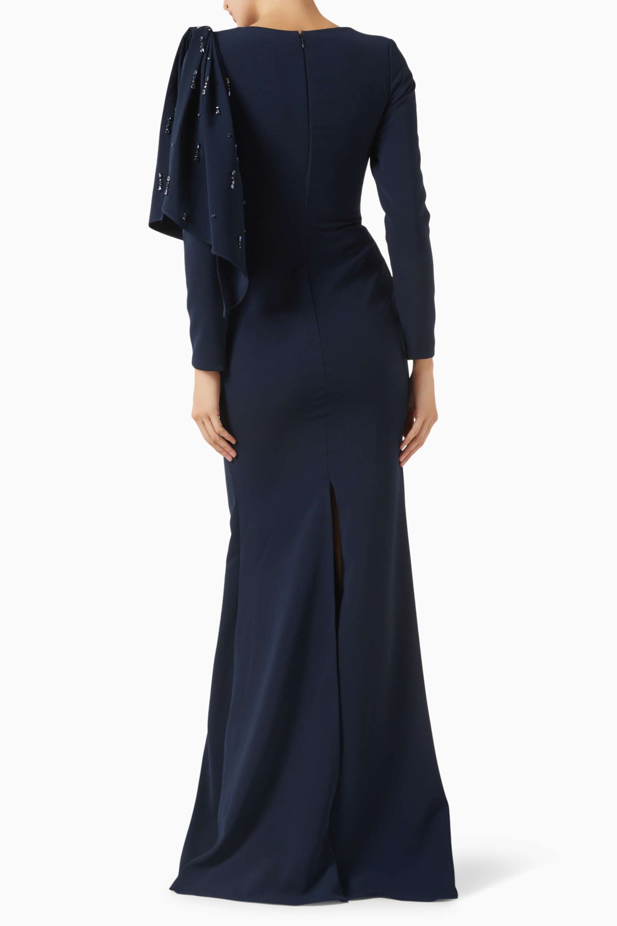 فستان سهرة أنيق بلون أحمر ياقوتي، يتميز بقصته البسيطة والمنحوتة وتفاصيل الكتف المنسدلة الجذابة. يزدان الكتف غير المتماثل بترصيعات كريستالية رقيقة، مما يضفي بريقًا وفخامة على التصميم البسيط. فستان أنيق وراقي، مثالي للمناسبات المسائية.