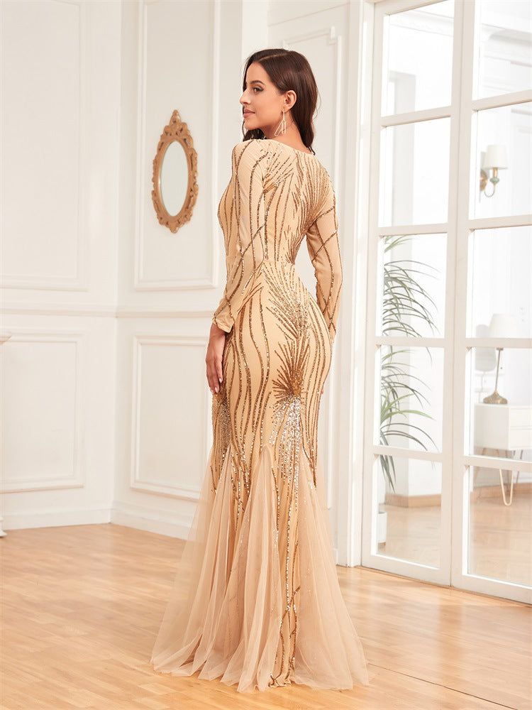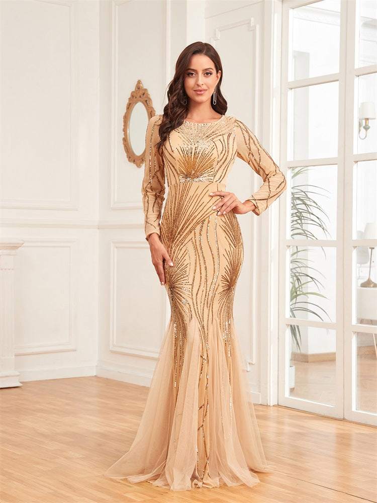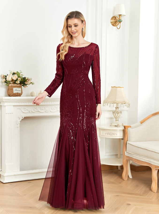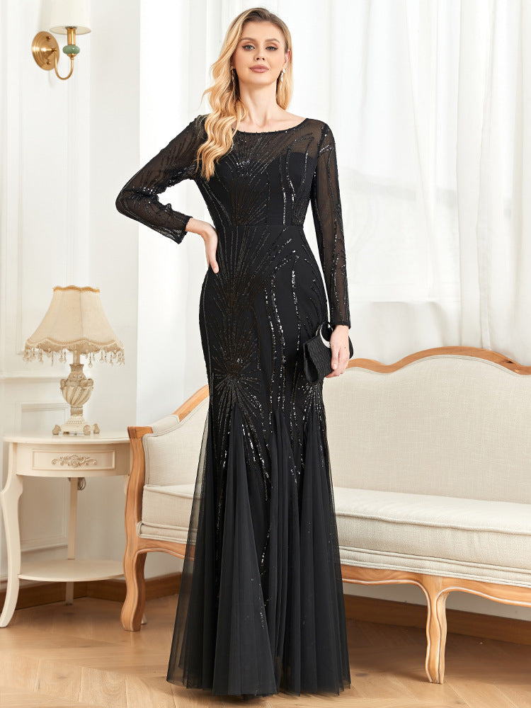 فستان شبكي بأكمام طويلة ومزين بالترتر – أدريانا