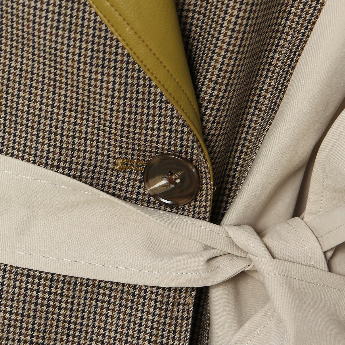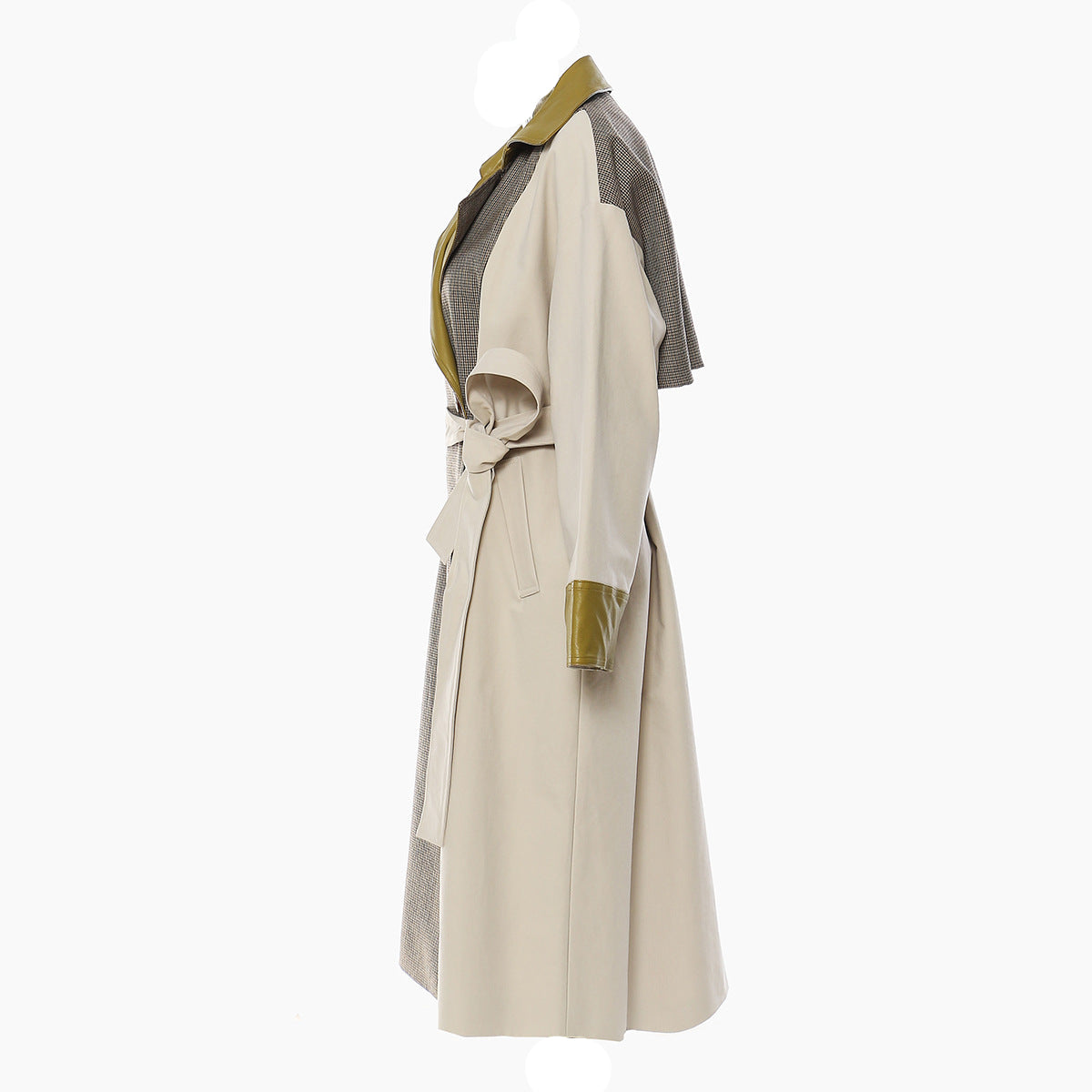 معطف ترنش بحزام مع طية صدر جلدية متباينة اللون – فيترا