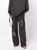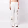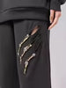 بنطال أسود أنيق بتفاصيل مزخرفة مزخرفة بلمسات معدنية ولآلئ، يندمج مع تصميم عصري مستقيم الساقين لإطلالة أنيقة وجريئة.