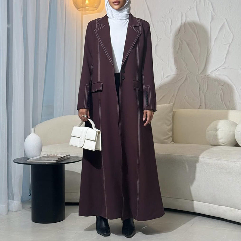 معطف أنيق طويل مصمم بقصة محكمة، يتميز بياقة حادة وأكتاف محددة وخياطة علوية متباينة تبرز جمال التصميم. قطعة أنيقة للغاية لإطلالة مميزة ومتكاملة. اسم القماش: بوليستر وقطن المقاس الكتف (سم) الصدر (سم) الخصر (سم) الورك (سم) الكم (سم) الطول (سم) S 43 102 96 110 62 141 M 44 106 100 114 63 142 L 45 112 106 120 64 143 XL 46 118 112 126 65 144