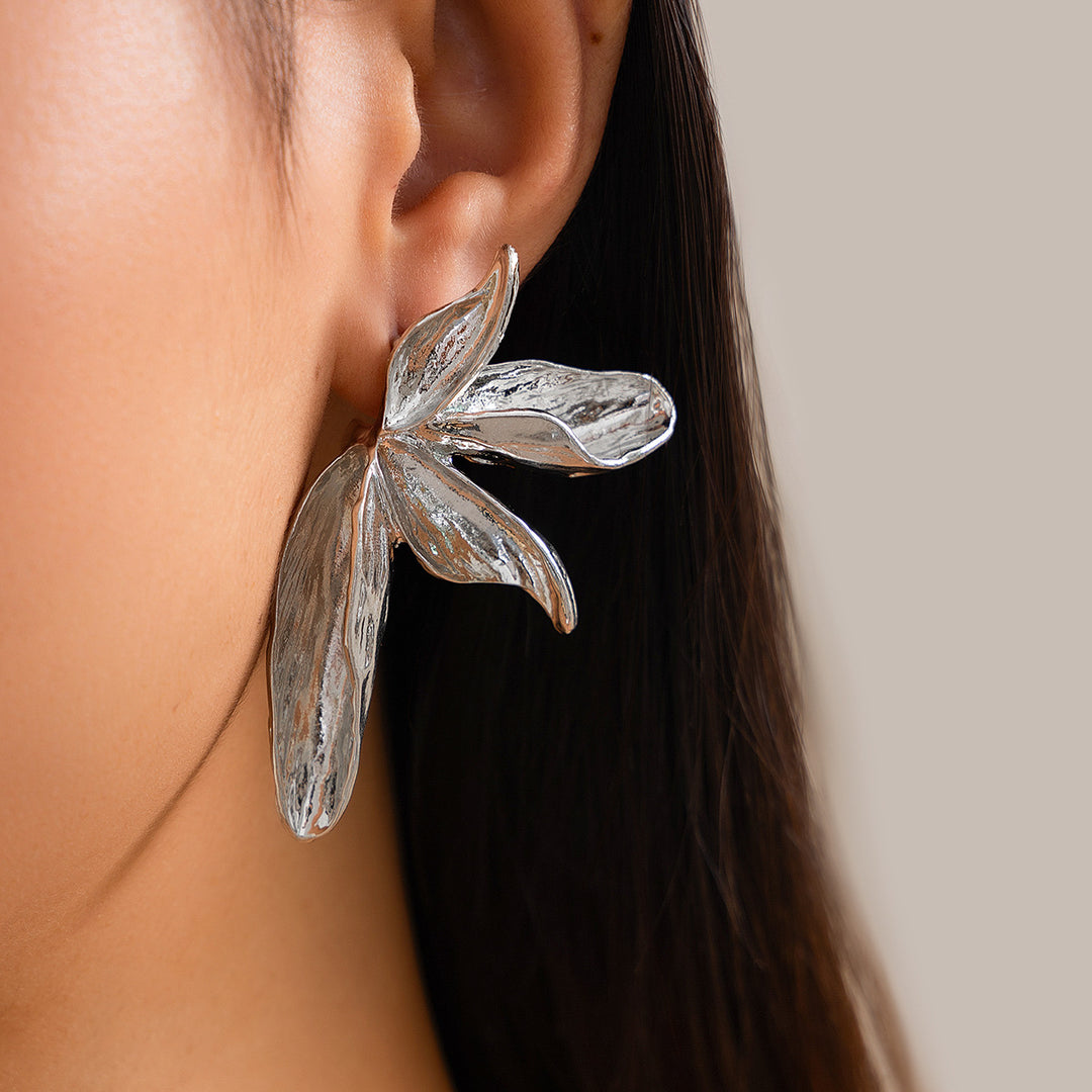 هذه الأقراط، المصممة على شكل بتلات زهور، مستوحاة من الطبيعة. مصنوعة بلمسة نهائية معدنية، يحاكي تصميمها انسيابية بتلات الزهور المتفتحة بلمسة فنية جريئة. خفيفة الوزن ومؤثرة في آن واحد، هذه الأقراط مثالية لإضافة لمسة من الأناقة النباتية إلى أي إطلالة - متوفرة بدرجات اللون الذهبي والفضي لتناسب ذوقك الفريد.