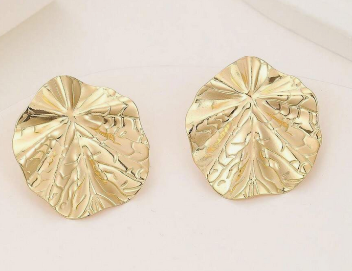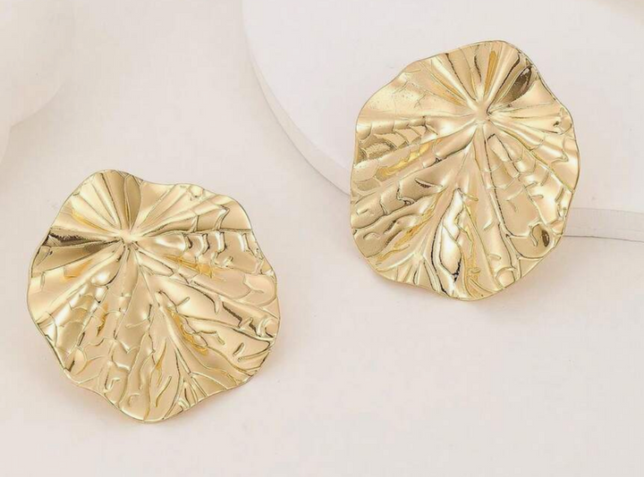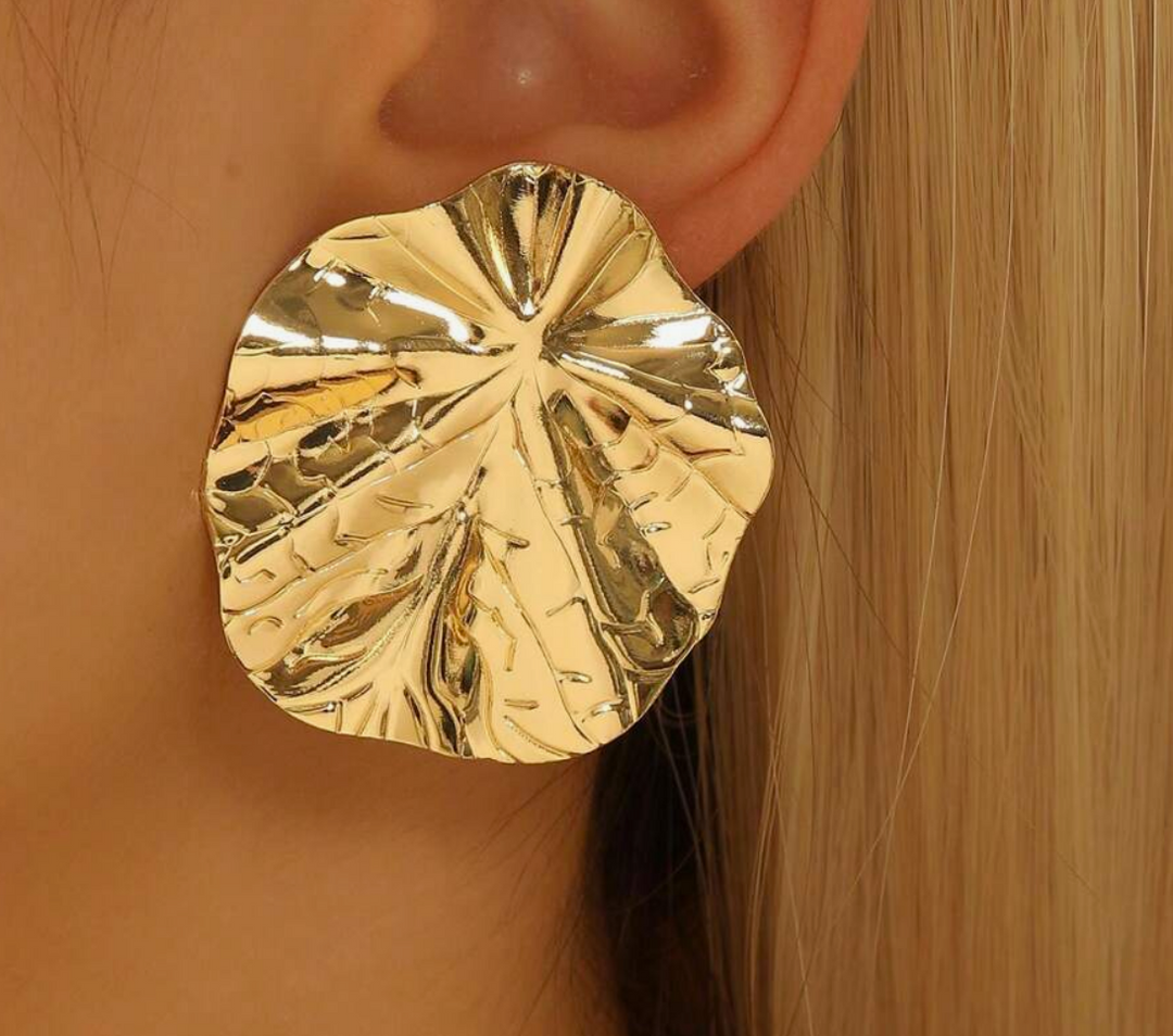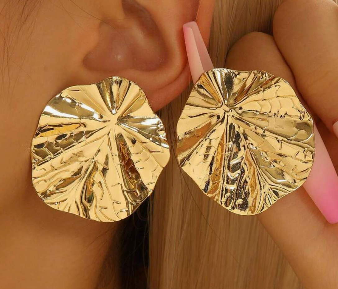مستوحاة من الشكل الرقيق لبتلة زهرة متفتحة، تتميز هذه الأقراط المميزة بتصميم انسيابي وعضوي بملمس مطروق يعكس الضوء بشكل جميل. تتميز بلمسة نهائية جريئة وأنيقة بلون ذهبي لامع، مثالية لإطلالات النهار والمساء.
