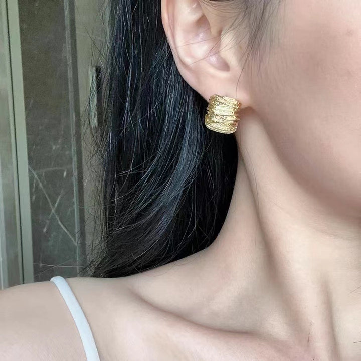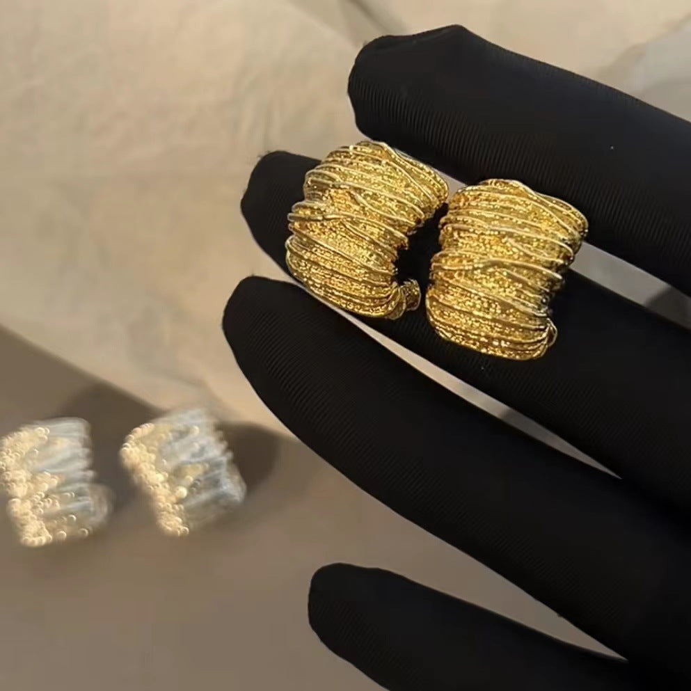 تتميز هذه الأقراط الجريئة والأنيقة بتصميم دائري سميك مُغلف بزخارف حلزونية معقدة، مما يمنحها مظهرًا متعدد الطبقات وذو أبعاد متعددة. يُضفي طلاءها الذهبي المصقول لمسة من الفخامة، بينما يُضفي تصميمها المُغلف الفريد لمسة فنية معاصرة. مثالية للارتقاء بالإطلالات الرسمية وغير الرسمية.