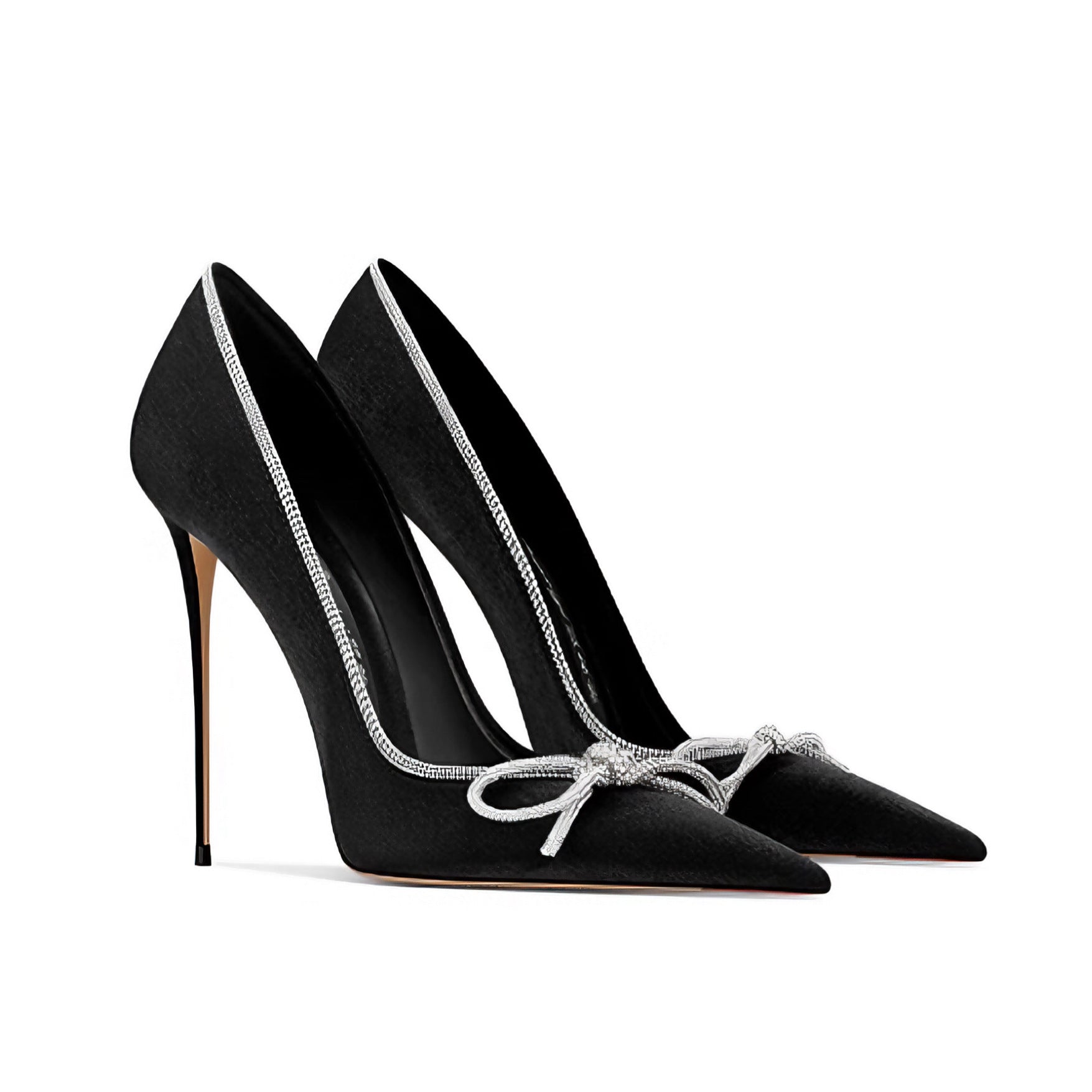 انطلقي نحو الأناقة مع هذا الحذاء الأسود الفاخر من الساتان، المصمم ليُضفي لمسةً من الأناقة على أي إطلالة مسائية بفضل حرفيته الراقية وتفاصيله البراقة. تصميمه الأنيق بمقدمة مدببة يُضفي لمسةً راقية خالدة، بينما يُعزز الكعب العالي ذو الكعب العالي من قوامكِ ويضفي لمسةً من الجاذبية الأخّاذة. ومن أبرز سماته الزخرفة الكريستالية التي تُحيط بالحذاء بدقة، فتُشعّ بريقاً مع كل خطوة. كما تُعزز تفاصيل القوس الكريستالية الرقيقة عند مقدمة الحذاء أنوثة وأناقة التصميم، مما يجعله الخيار الأمثل للمناسبات الخاصة، والفعاليات الرسمية، والسهرات الأنيقة.