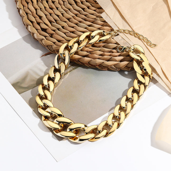 قلادة سلسلة كلاسيكية بتصميم جديد بلمسة نهائية ذهبية لامعة. حلقاتها السميكة والمتشابكة تضفي لمسة عصرية خالدة، مما يجعلها الإكسسوار المثالي للإطلالات الرسمية وغير الرسمية. تألقي بثقة أينما ذهبتِ.