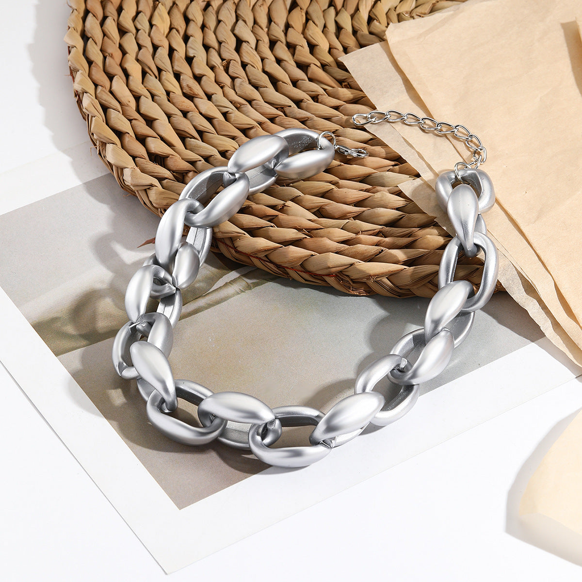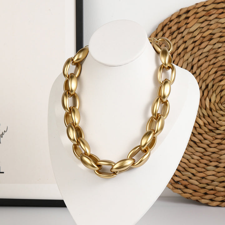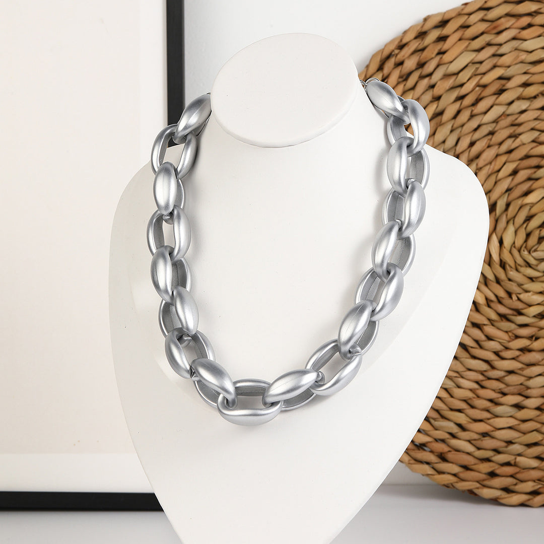 عقد جريء بسلسلة سميكة وحلقات بيضاوية كبيرة الحجم بلمسة نهائية ناعمة غير لامعة. يأتي هذا العقد باللون الذهبي اللامع والفضة الأنيقة، ليضفي لمسة عصرية على أي إطلالة. خفيف الوزن ولكنه مؤثر، مثالي للإطلالات الكاجوال الأنيقة أو إطلالات السهرة الراقية. قابل للتعديل ليناسب جميع الأذواق، نوفا هي الإكسسوار المثالي لإطلالة ساحرة بكل سهولة.