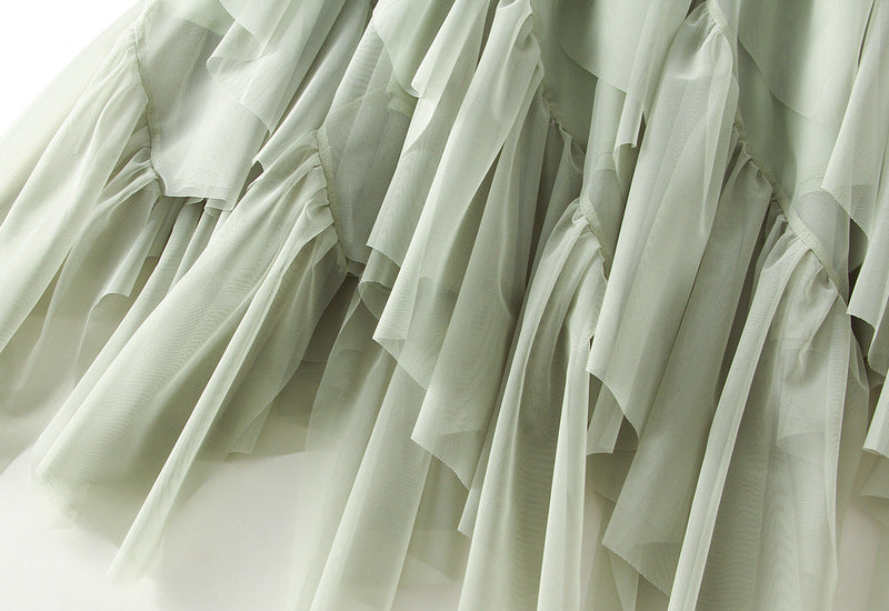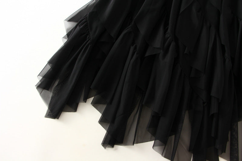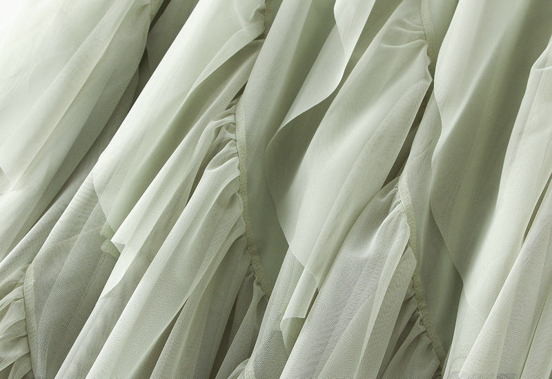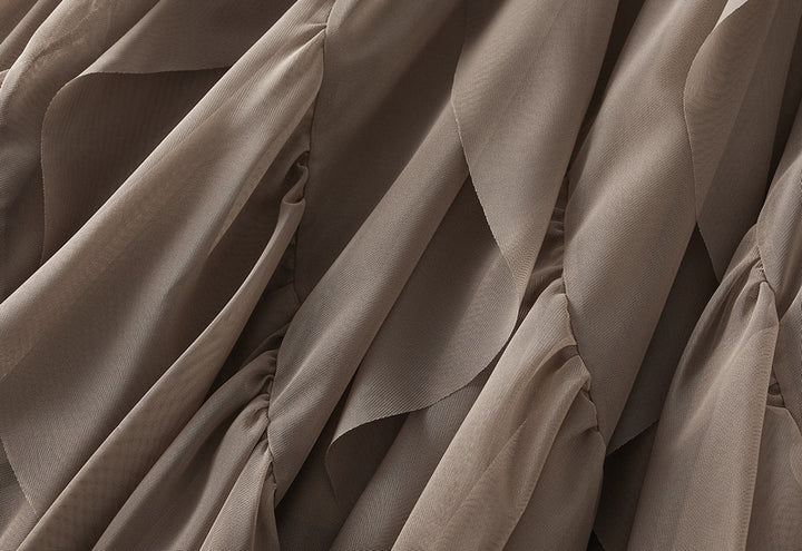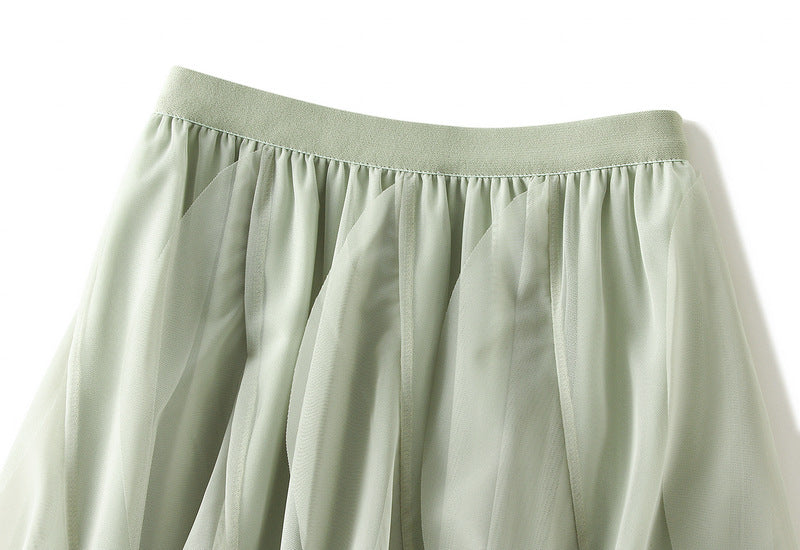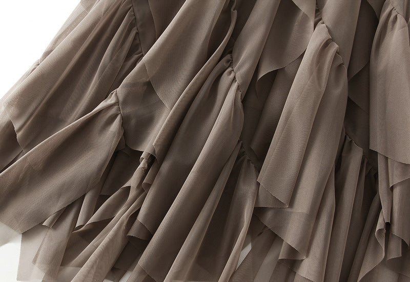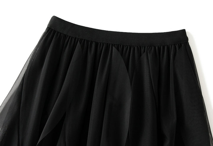 مزيجٌ آسرٌ من الأناقة والحركة، تتميز هذه التنورة بحاشية غير متماثلة جذابة وكشكشة انسيابية من قماش شبكي رقيق. خصرها المرتفع يُبرز جمال قوامكِ، بينما يُضفي تصميمها الانسيابي لمسةً رومانسيةً على كل خطوة. مثالية للمناسبات الرسمية أو الإطلالات اليومية الأنيقة، وتأتي هذه التنورة بمجموعة من الألوان الناعمة والعميقة لتناسب جميع الأذواق.