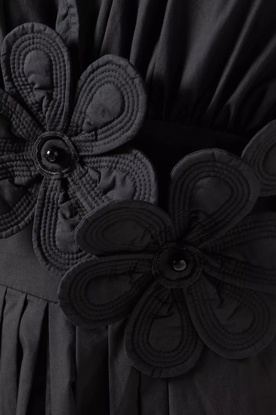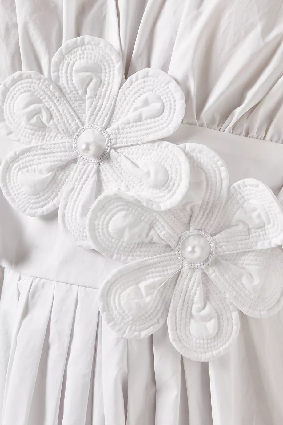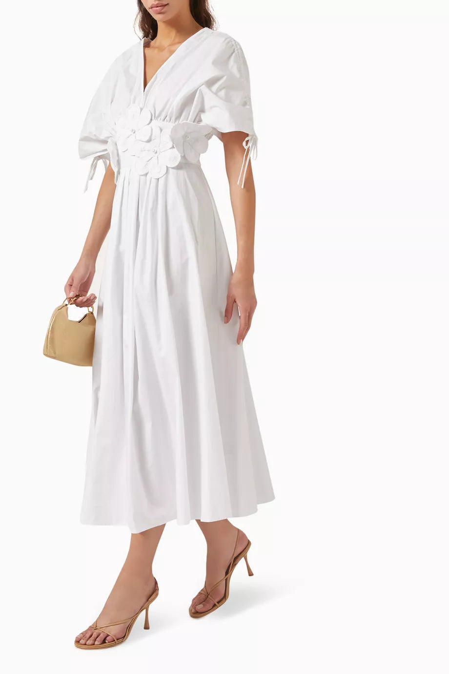 فستان ميدي القطن الخامس مع الخصر الأزهار ثلاثية الأبعاد-بليوم