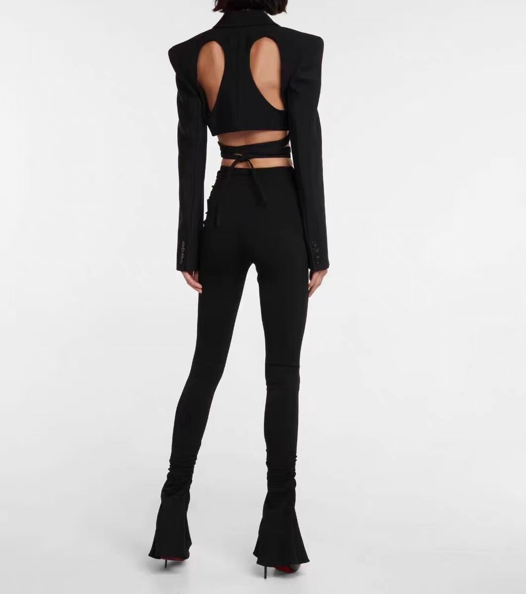 يجمع هذا البليزر الجريء والعصري بين الخياطة الكلاسيكية ولمسة عصرية. يتميز بتصميم أنيق، وأكتاف حادة ومبالغ فيها، وفتحة أمامية غير متماثلة تضفي عليه لمسة جريئة. تسمح تفاصيل الربطة الأمامية بتعديل المقاس، مما يضفي عليه مرونة. مثالي لإطلالة مميزة في المناسبات المسائية أو التجمعات العصرية، حيث يمزج هذا السترة بين الرقي والجرأة بكل سهولة. نسقيه مع بنطال بخصر عالٍ أو تنورة لإطلالة لا تُنسى.