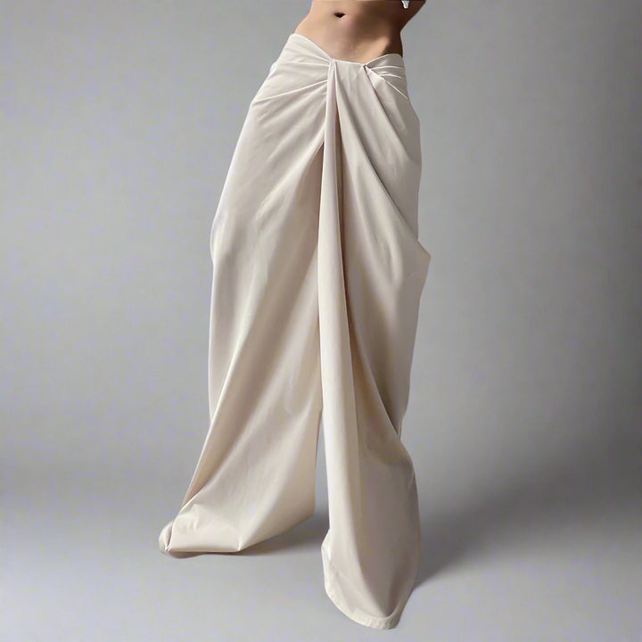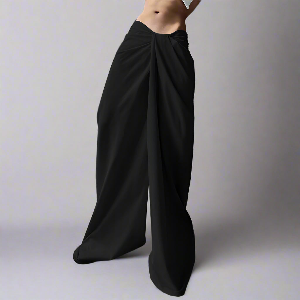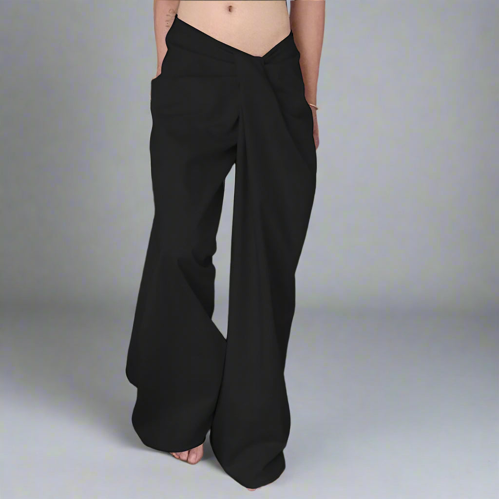 الوصف: يتميز هذا البنطال الواسع بتصميم فريد بخصر مُعقد يُضفي لمسةً أنيقة على قوامكِ الأنيق. مصنوع من قماش فاخر، يوفر البنطال الراحة والمظهر الأنيق. يُبرز خصركِ العالي قوامكِ، بينما تُضفي ساقاكِ الانسيابية مظهرًا أنيقًا وعصريًا. مثالي للمناسبات الرسمية أو شبه الرسمية، يُمكنكِ تنسيقه مع بلوزة أو جاكيت مُفصّل لإطلالة متكاملة.