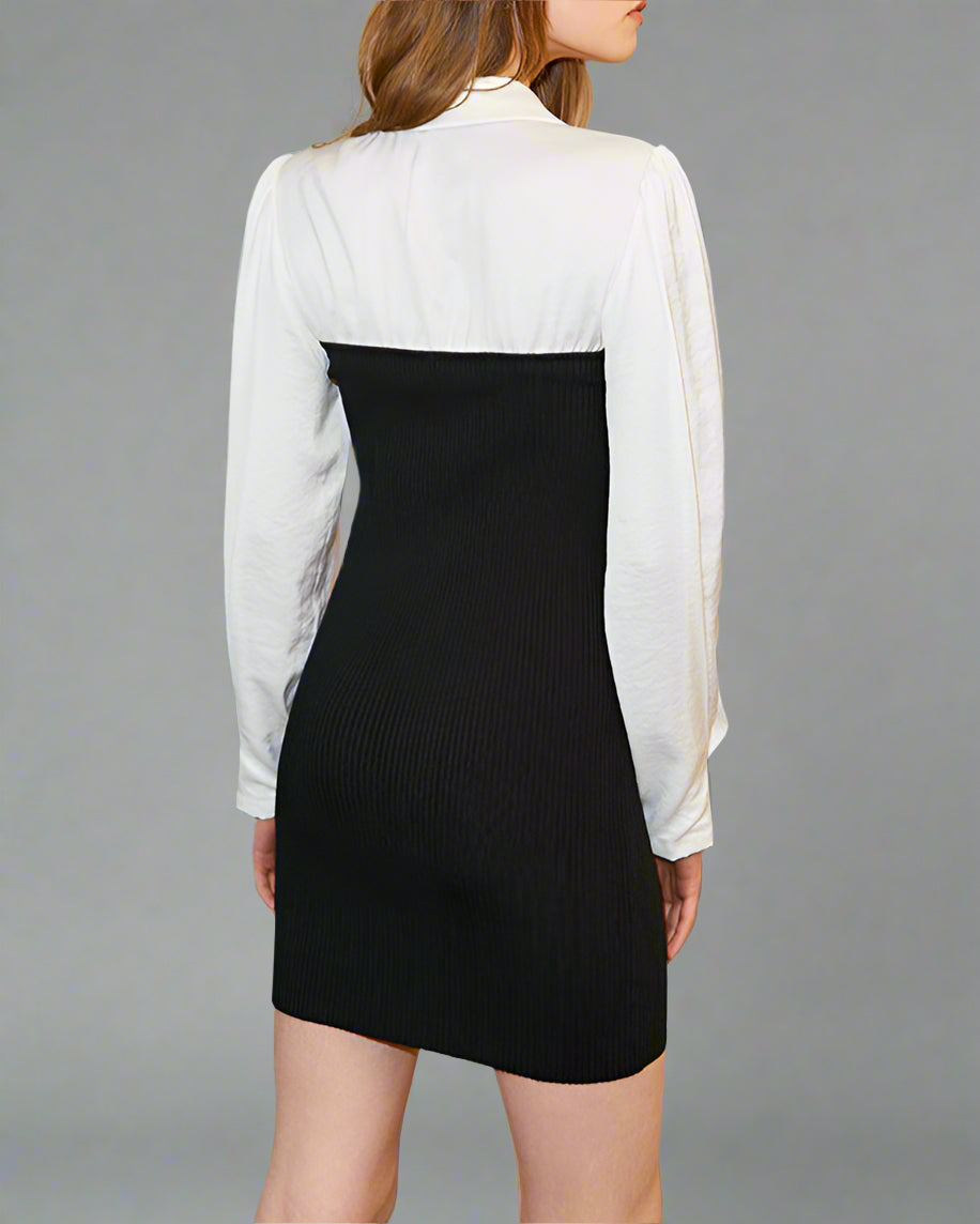 فستان قصير أنيق بتفاصيل زر لؤلؤي مميز يضيف لمسة من الأناقة. التصميم الضيق يبرز قوامك، بينما يضيف تأثير اللون المتباين لمسة عصرية. مثالي من النهار إلى الليل، يجمع هذا الفستان بين الراحة والأناقة. اسم القماش فيسكوز مزيج الحجم الصدر الخصر الطول الأرداف عرض الكتف طول الكم S 92 68 79 110 38 65 M 96 72 80 114 39 66 L 100 75 81 118 40 67