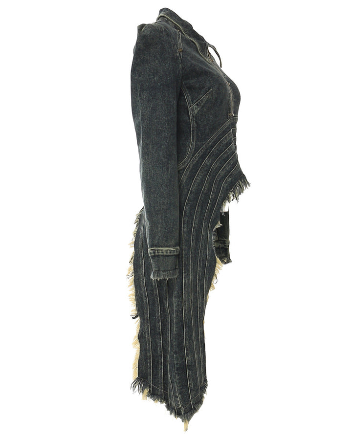 جاكيت جينز جريء وعصري بتصميم فريد غير متماثل، وسحاب إغلاق، وحواف منسلة لإطلالة عصرية جريئة. أكتاف بارزة وحاشية منحنية تضفي مظهرًا أنيقًا، بينما يضفي التصميم الممزق لمسة من الجاذبية الجريئة. يجمع هذا الجاكيت بين الجينز الكلاسيكي والتفاصيل العصرية الراقية. القماش _ مزيج القطن