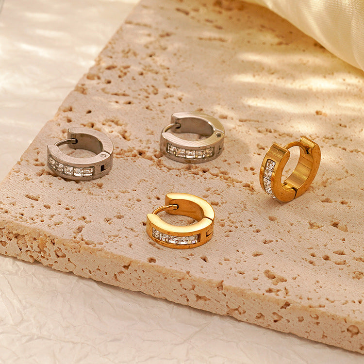 تتميز هذه الأقراط الدائرية بتصميم أنيق وعصري، مع صف من الكريستالات المربعة المرصعة على الجهة الأمامية، مما يضفي عليها بريقًا راقيًا. متوفرة باللونين الذهبي والفضي المصقولين، لإطلالة فاخرة وبسيطة، مثالية للأناقة اليومية أو المناسبات الخاصة. خفيفة الوزن وآمنة بفضل قفلها السريع، تجمع بين الأناقة والراحة بكل سهولة.