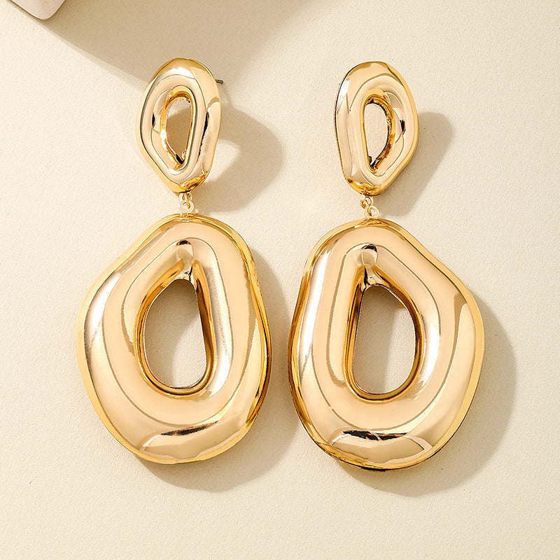 أقراط متدلية غير متماثلة من المعدن المصهور. تتميز بتصميم انسيابي ونحتي بلمسة نهائية فضية مصقولة، تضفي لمسة عصرية وراقية على أي إطلالة. خفيفة الوزن وملفتة للنظر، مثالية لعشاق الإكسسوارات الفريدة والمميزة. مثالية للإطلالات الكاجوال والأنيقة على حد سواء.