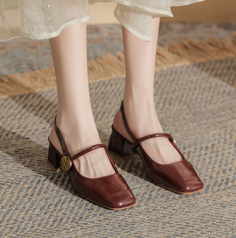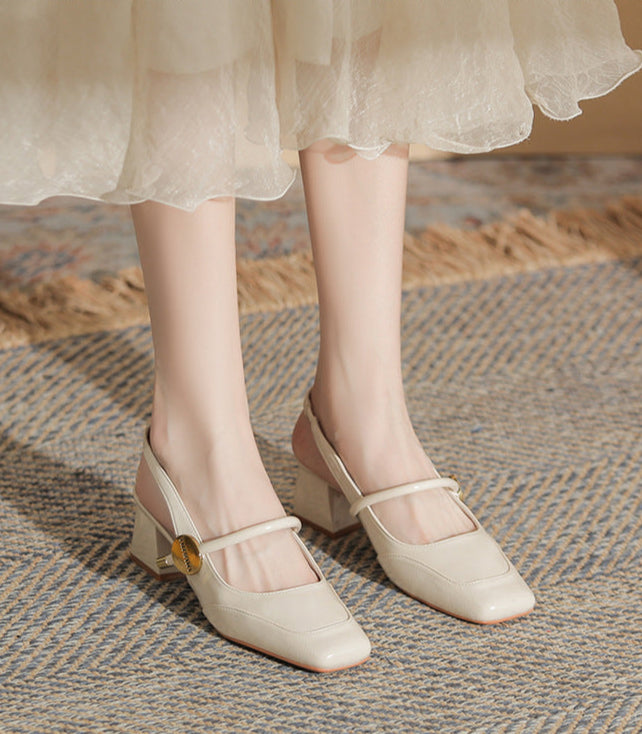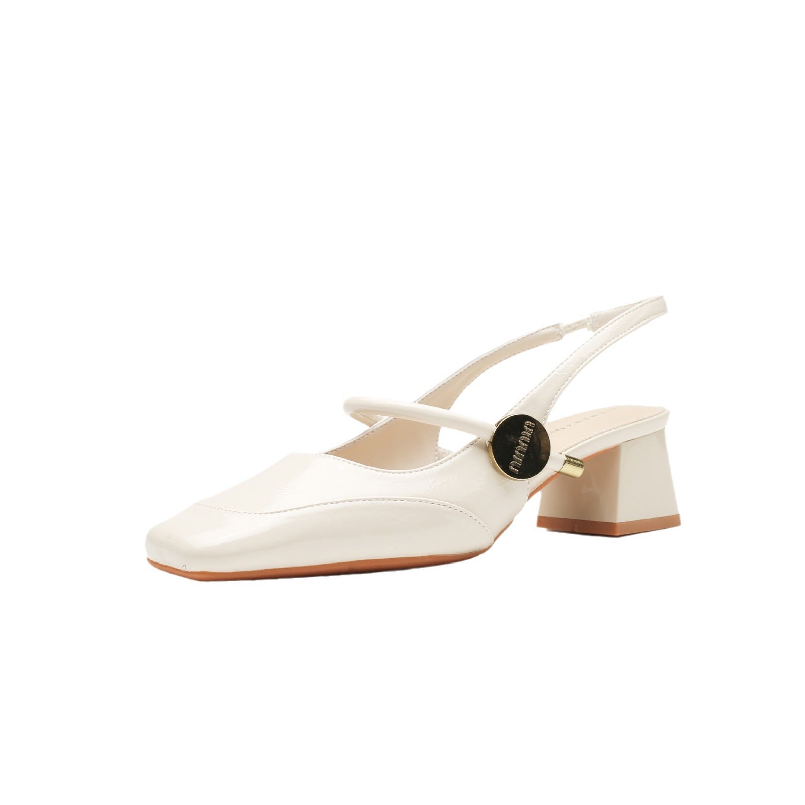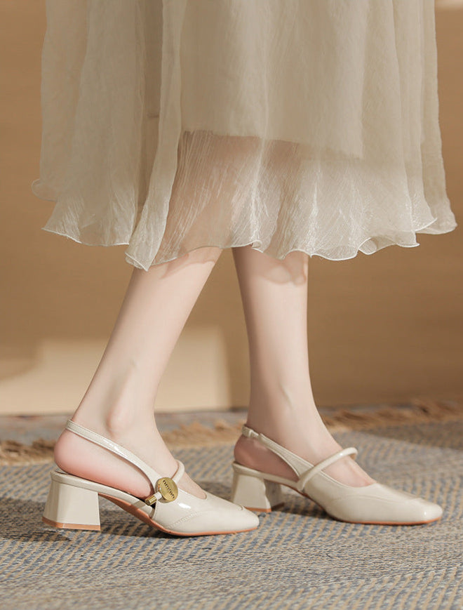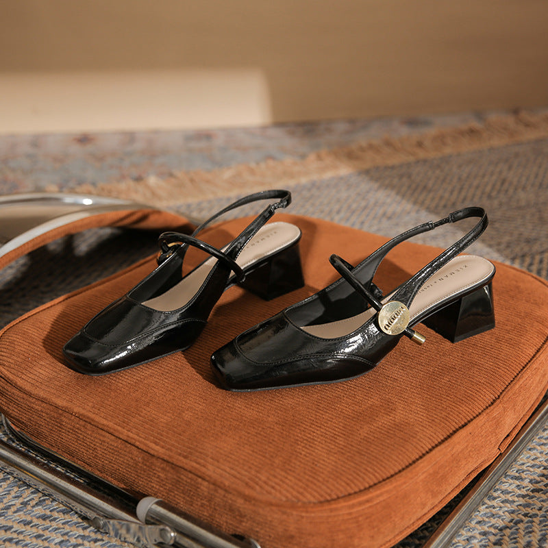 حذاء بكعب سميك مفتوح من الخلف مع حزام معدني بأزرار – أوريليادوي