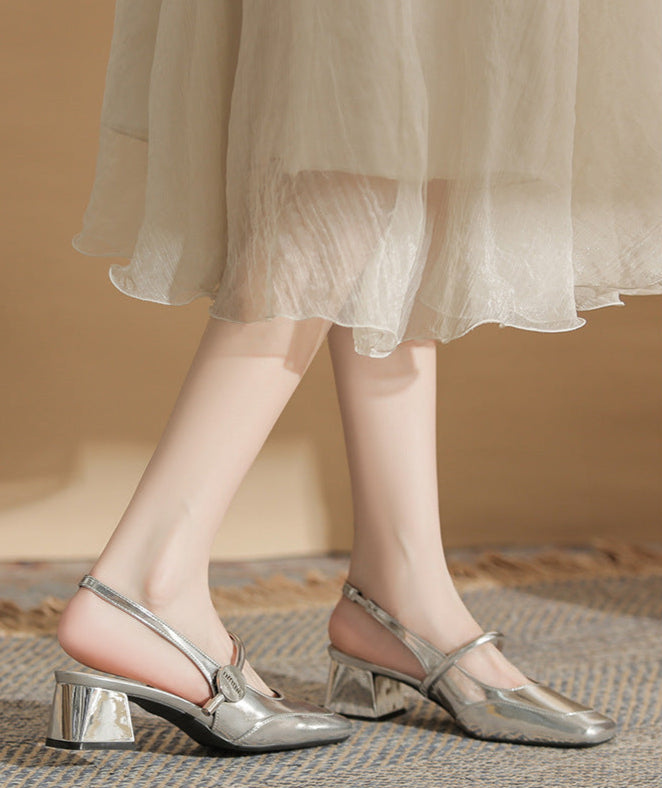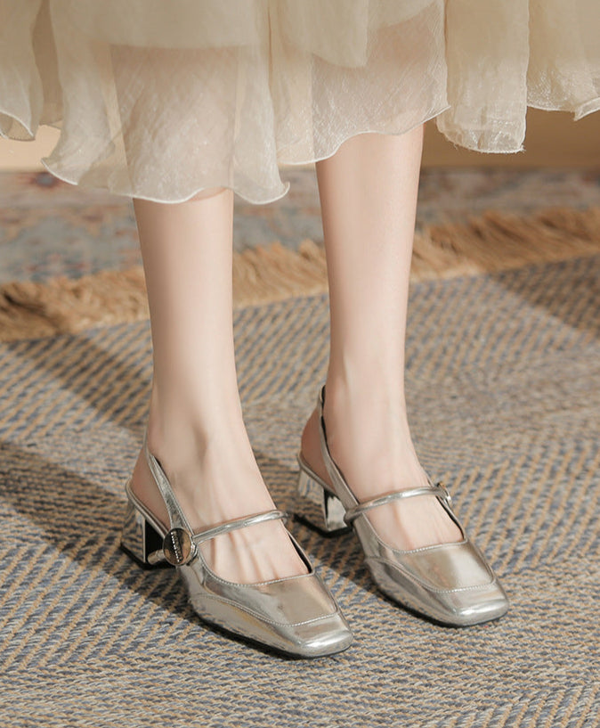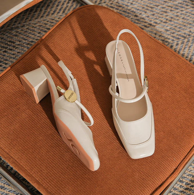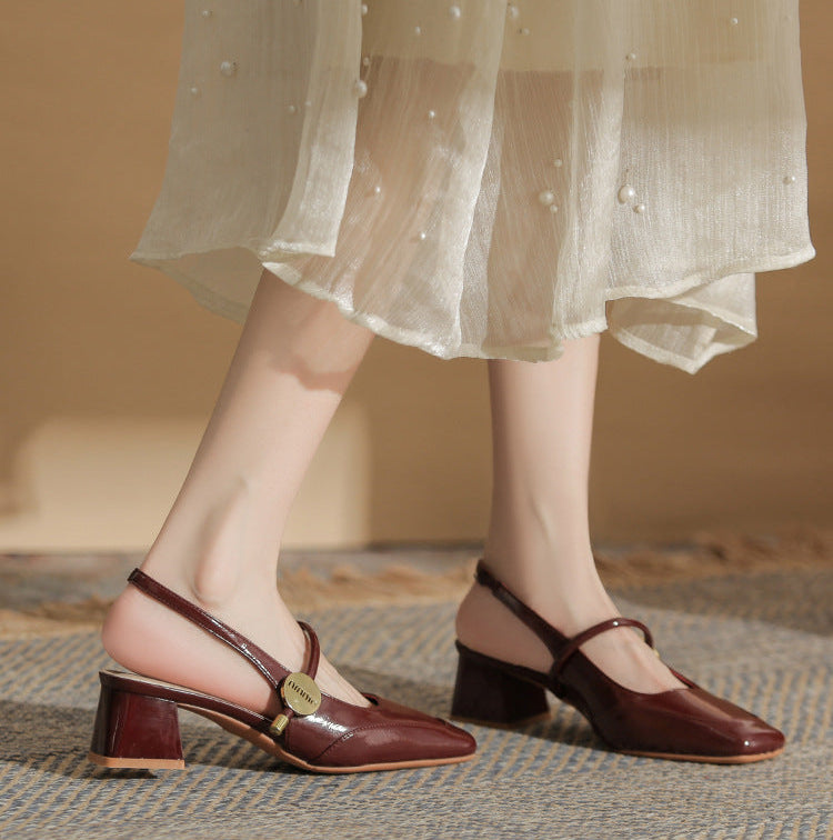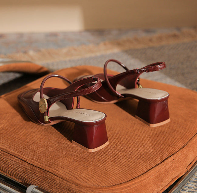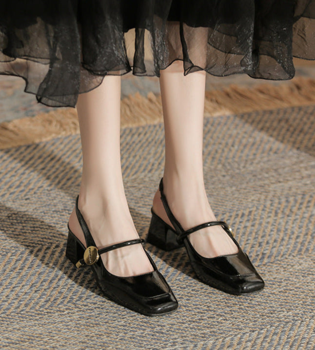 حذاء بكعب سميك مفتوح من الخلف مع حزام معدني بأزرار – أوريليادوي