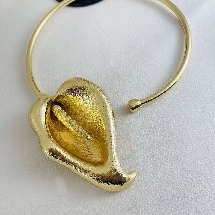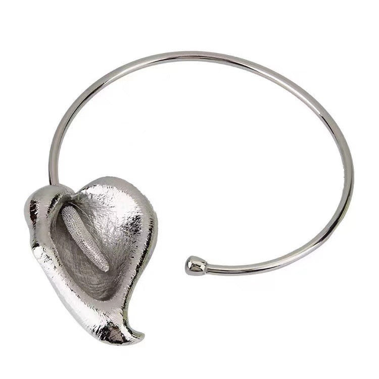 أضف لمسةً جريئةً مع هذا السوار المفتوح بتصميم بتلةٍ منحوتةٍ أخاذة. مصنوعٌ بلمسةٍ فضيةٍ لامعة، يلتفّ هذا الشكل العضوي حول المعصم بأناقة، جامعاً بين الفن والأناقة في قطعةٍ واحدةٍ مميزة. مثاليٌّ لإضافة لمسةٍ عصريةٍ راقيةٍ إلى أي إطلالة.