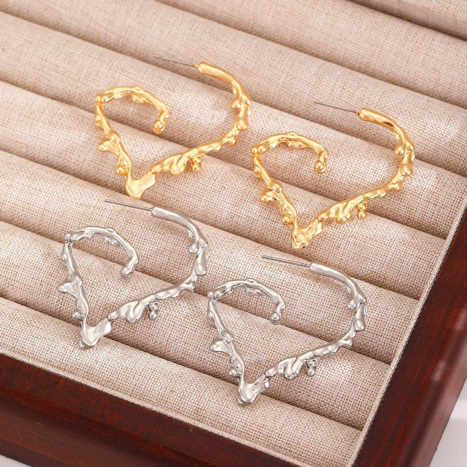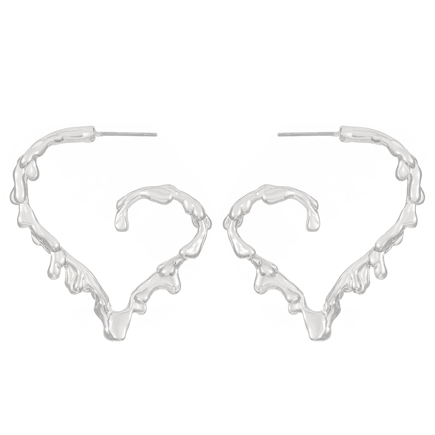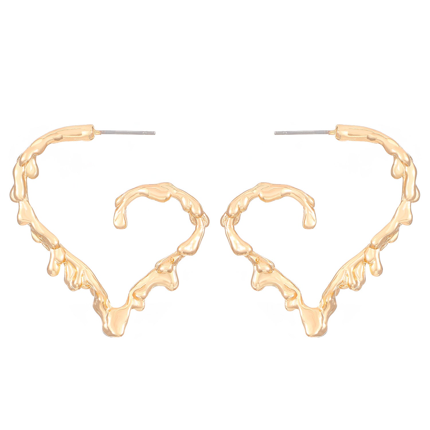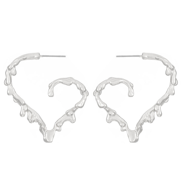 تتميز هذه الأقراط الدائرية على شكل قلب بتصميم مستوحى من المعدن المصهور، ينضح برومانسية جريئة وذوق فني رفيع. مصنوعة من الذهب والفضة، وسطحها المزخرف يحاكي المعدن المتدفق، مما يضفي لمسة نحتية وعصرية على تصميم القلب الكلاسيكي. خفيفة الوزن وجذابة، هذه الأقراط الدائرية المميزة مثالية لإطلالات يومية مميزة أو لإضفاء لمسة من التألق على إطلالات السهرة.