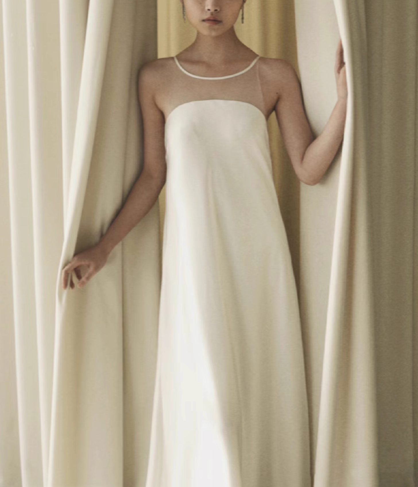 فستان ساتان بفتحة رقبة شفافة – زيلين