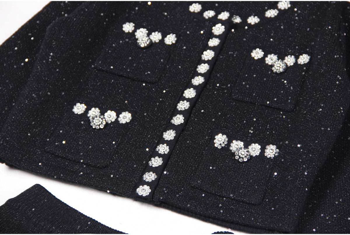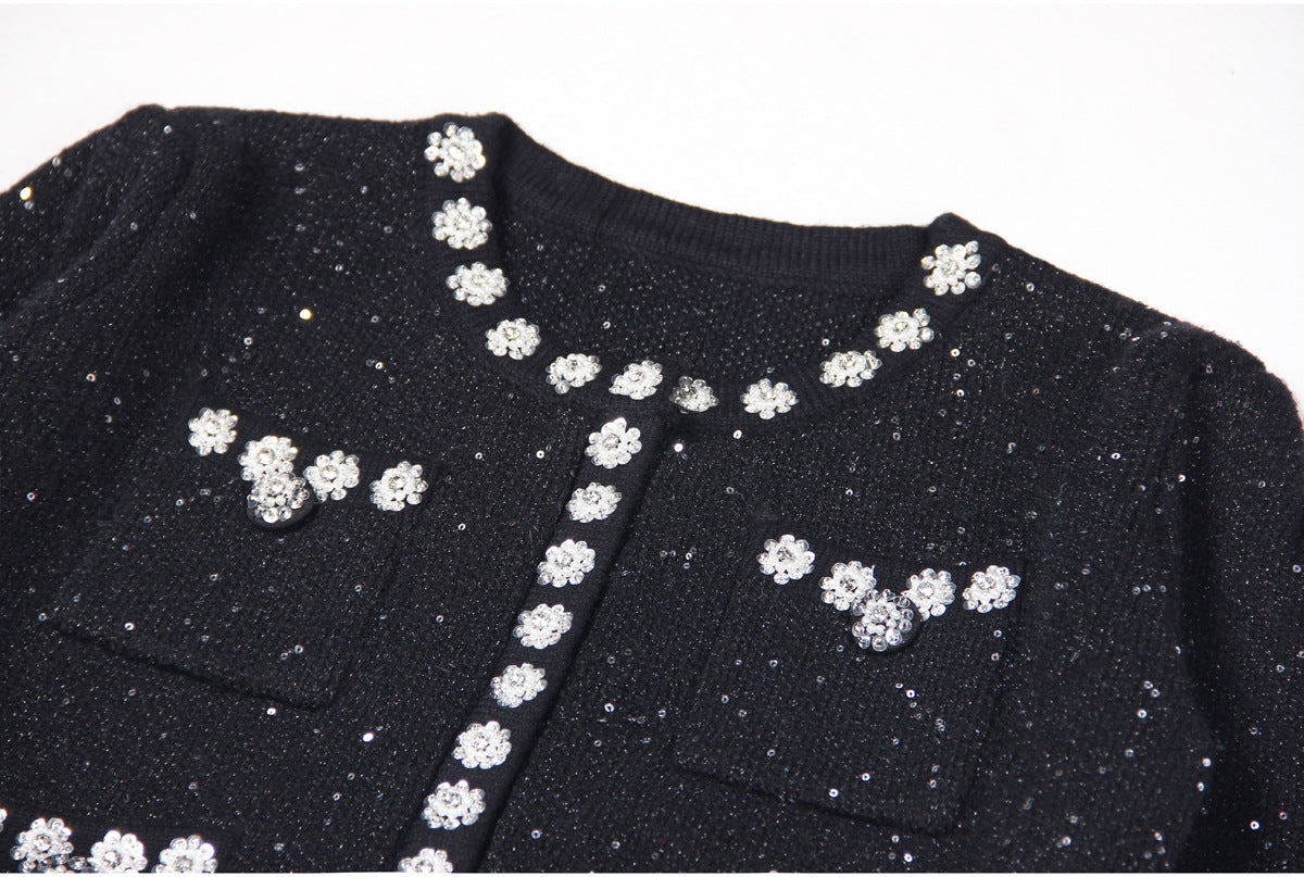 جاكيت تويد أنيق ومُقصوص، مُرصّع بكريستالات لامعة على طول الجهة الأمامية والجيوب. أنيق وعصري، مثالي لإطلالتك. اسم القماش: مادة صوفية تقليدية المقاس الصدر (سم) الخصر (سم) الورك (سم) الكتف (سم) الطول (سم) الكم (سم) S 90 88 – 36 39 59 M 94 92 – 37 40 60 L 98 96 – 38 41 61