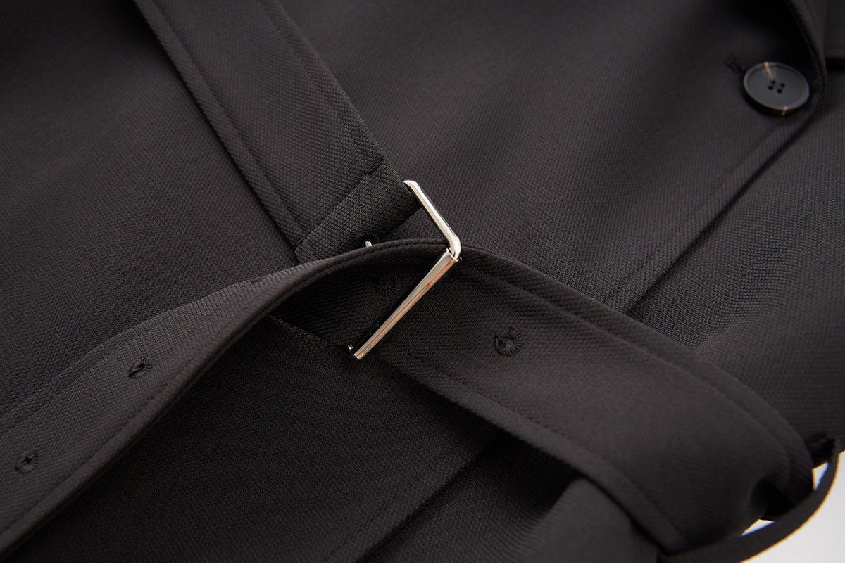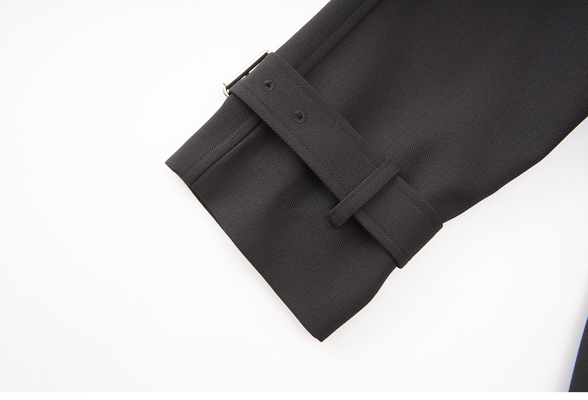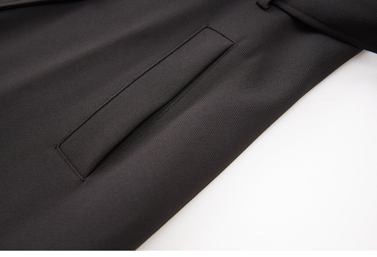 جاكيت أنيق من المخمل الأسود، مصمم بفتحة رقبة على شكل حرف V عميقة وإغلاق أمامي أنيق بأزرار. مزين بحافة من الدانتيل الشفاف الرقيق لإضفاء لمسة أنثوية ناعمة، مثالي لإطلالات المساء والمناسبات الرسمية أو لإطلالة أنيقة متعددة الطبقات.