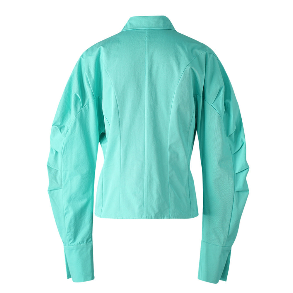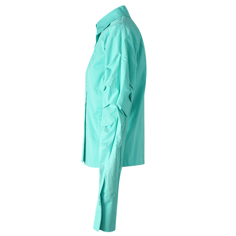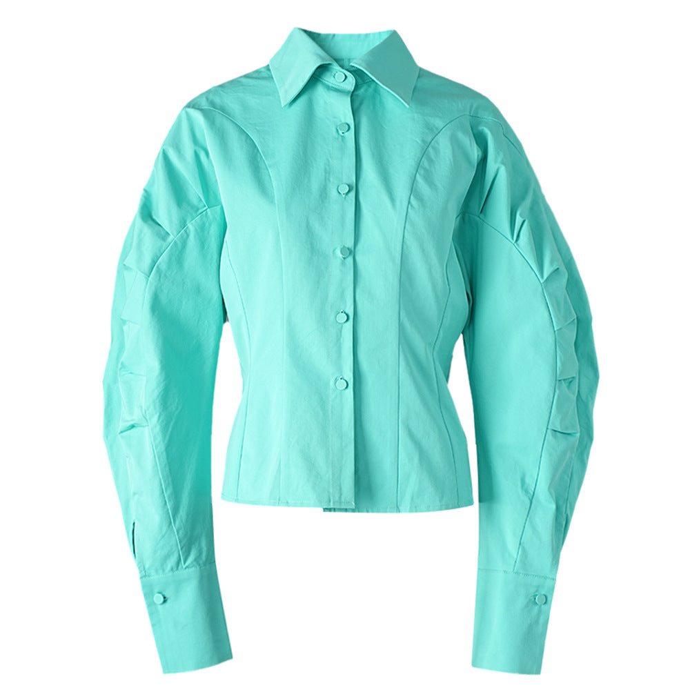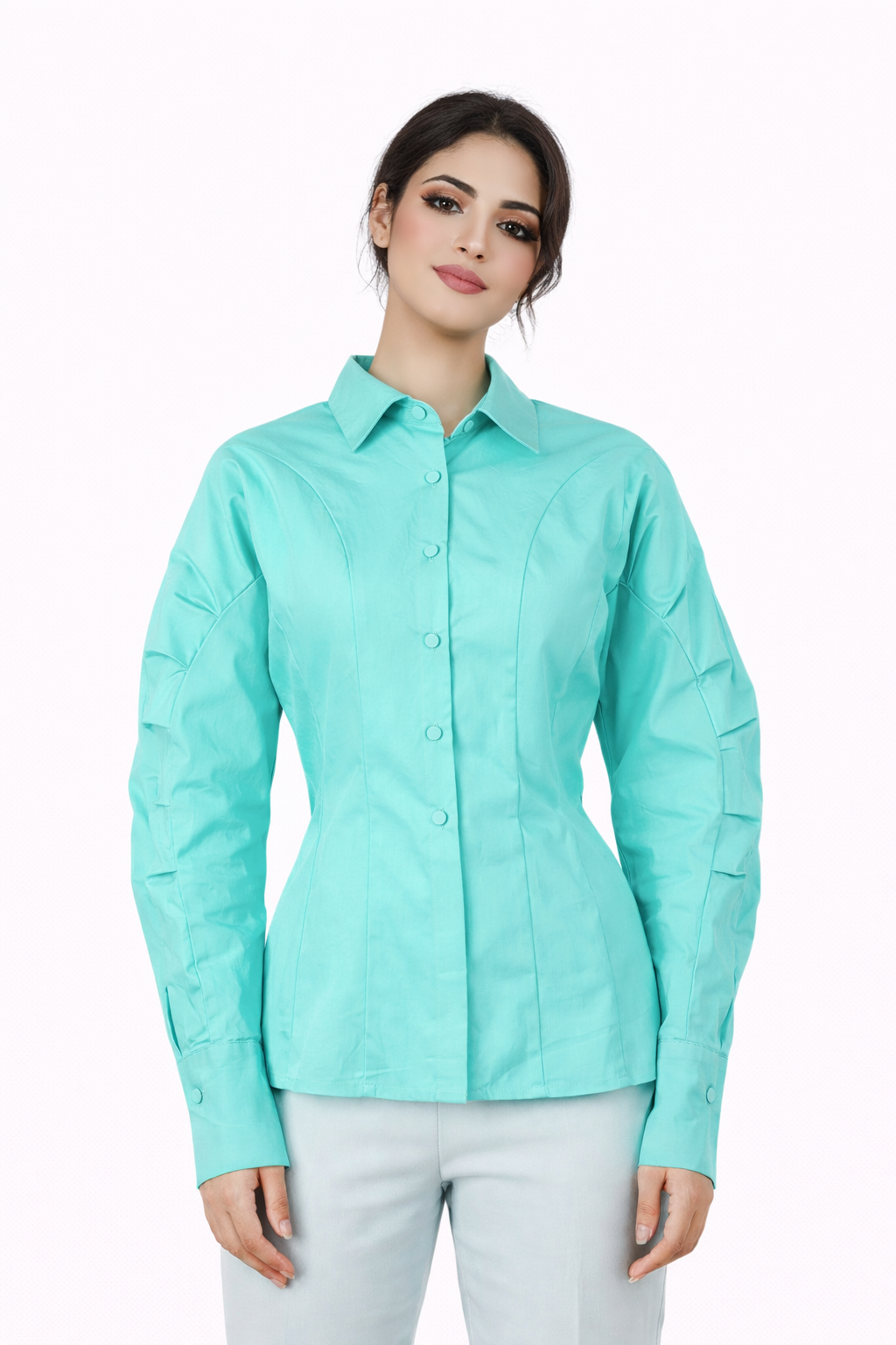 قميص أخضر نعناعي منعش بأزرار، مصمم بخياطة دقيقة وتفاصيل أكمام محددة تبرز جمال القوام. يتميز بياقة أنيقة وأزرار ناعمة، ليمنحكِ إطلالة عصرية أنثوية مثالية لإطلالة أنيقة نهاراً أو لإطلالة كاجوال راقية.