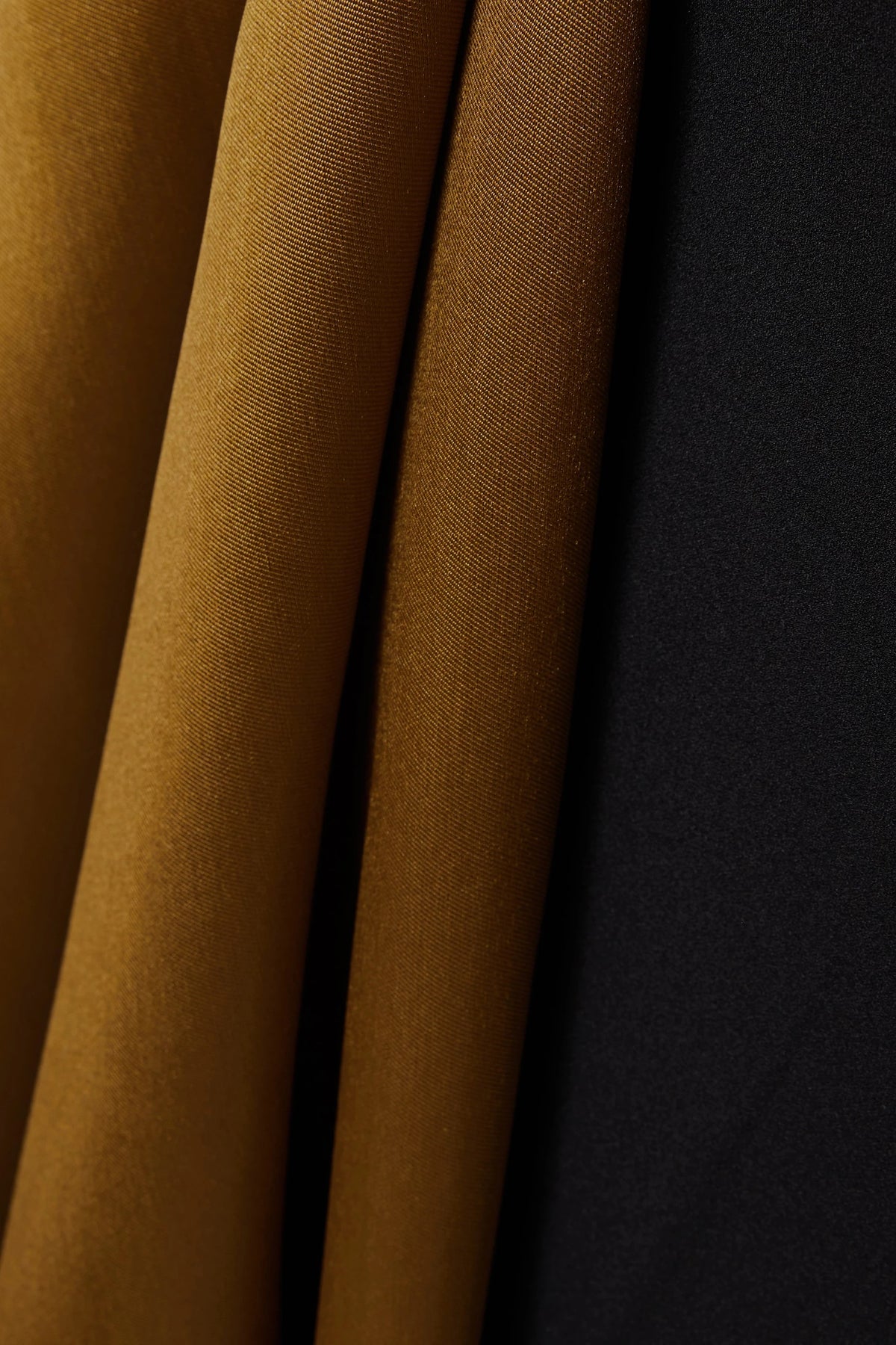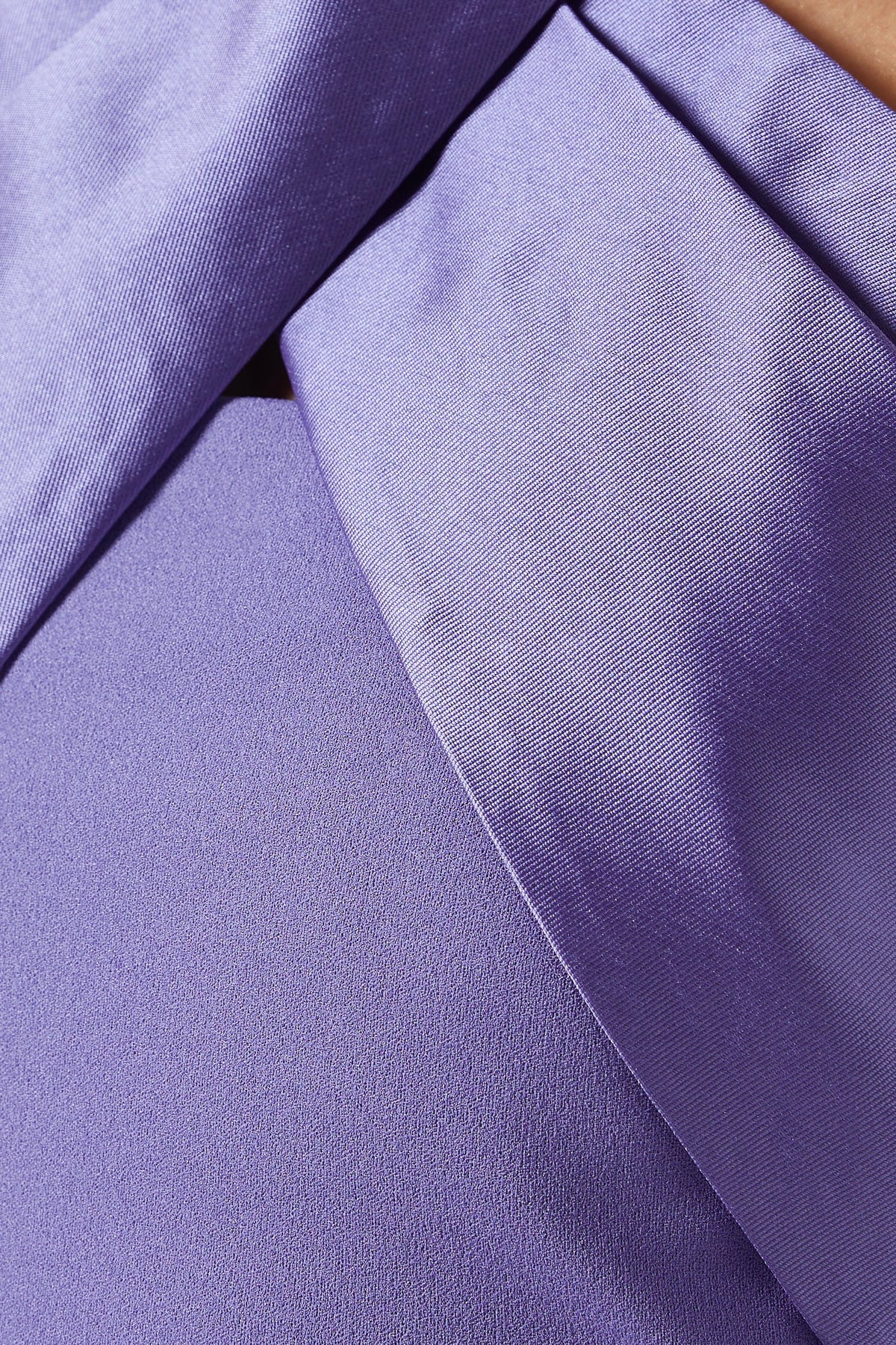 فستان ساتان بفتحة رقبة على شكل حرف V مع طبقة خارجية منسدلة – القرمزي