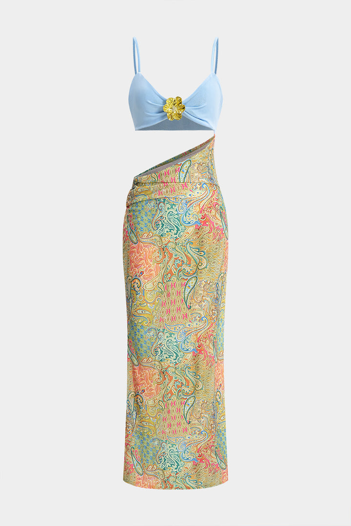فستان ماكسي بدون أكمام بتصميم تجريدي متباين