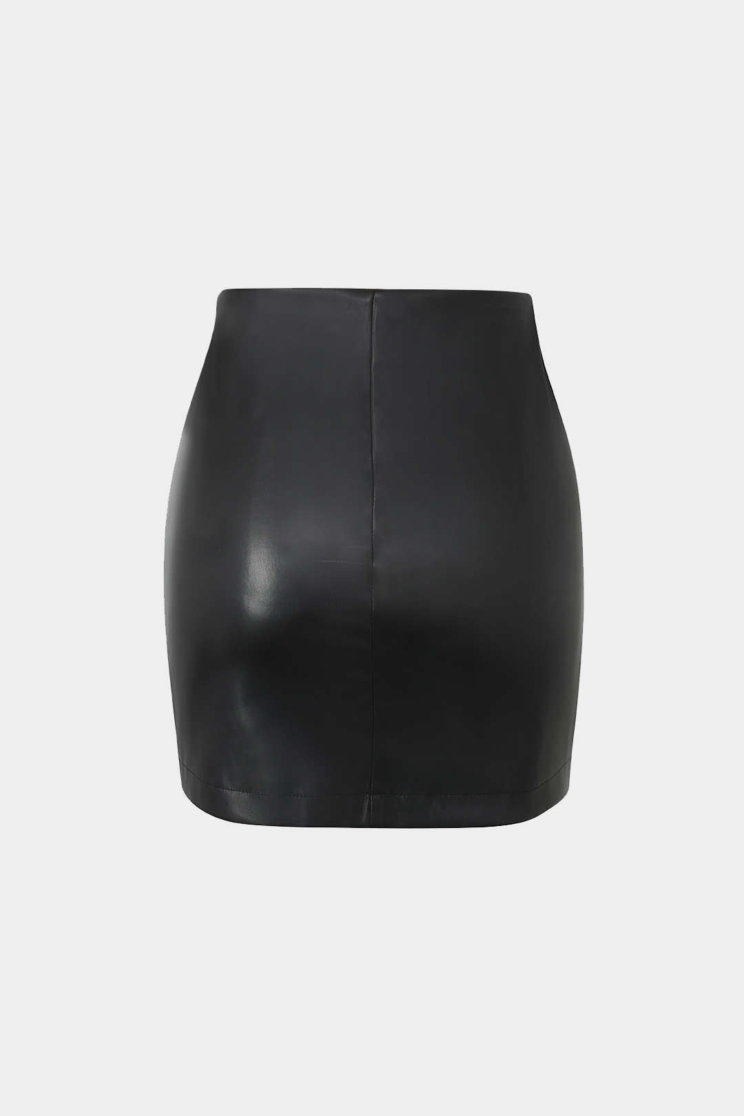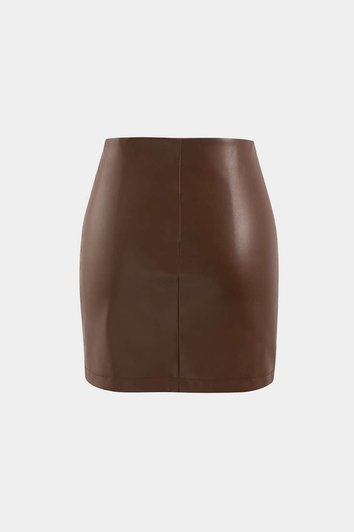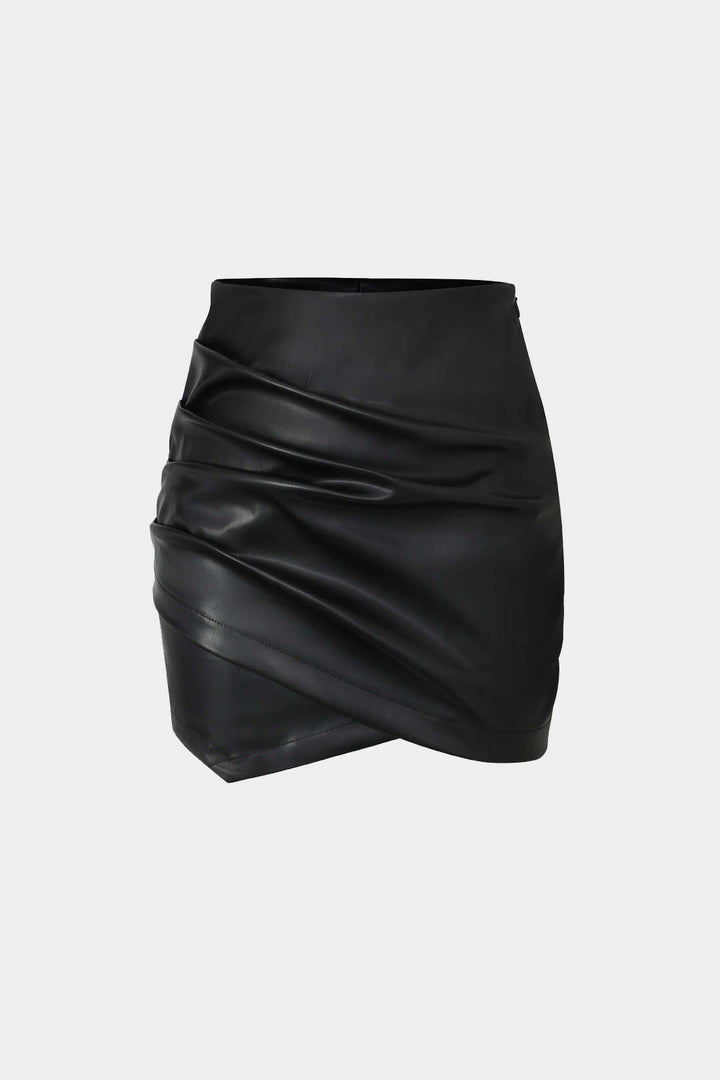 تنورة قصيرة من الجلد الصناعي بتصميم غير متماثل