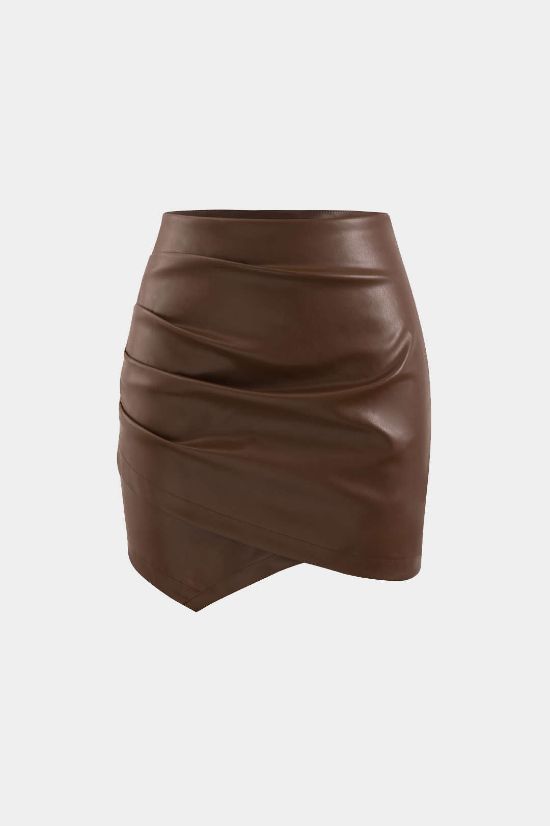 Asymmetrical Ruched Faux Leather Mini Skirt
