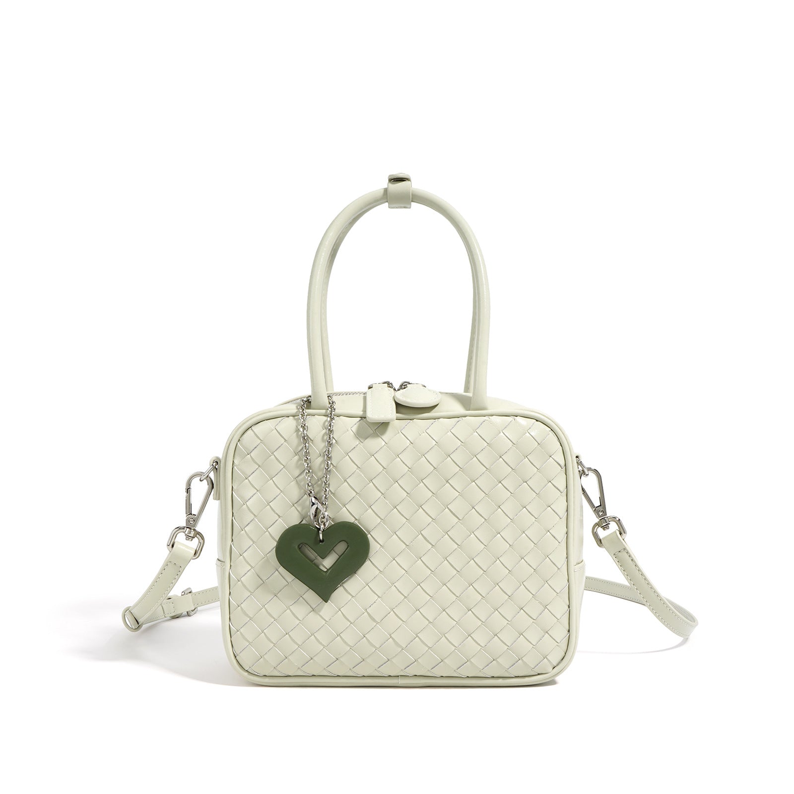 حقيبة يد سوداء مربعة الشكل مع حلية على شكل قلب – ليرا