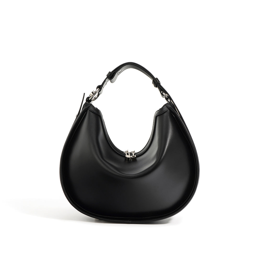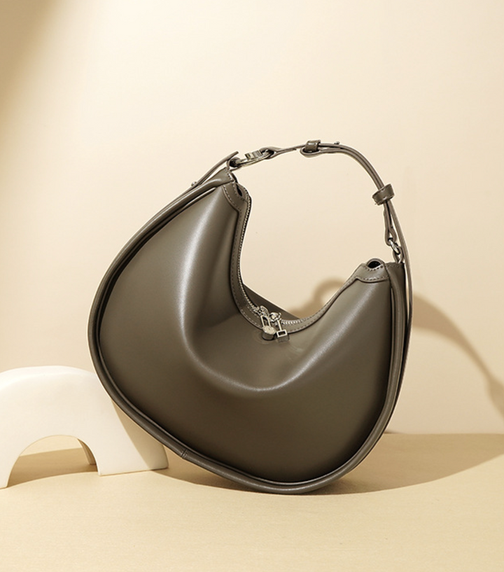 حقيبة كتف جلدية على شكل هلال بسحاب علوي – اوليفيا