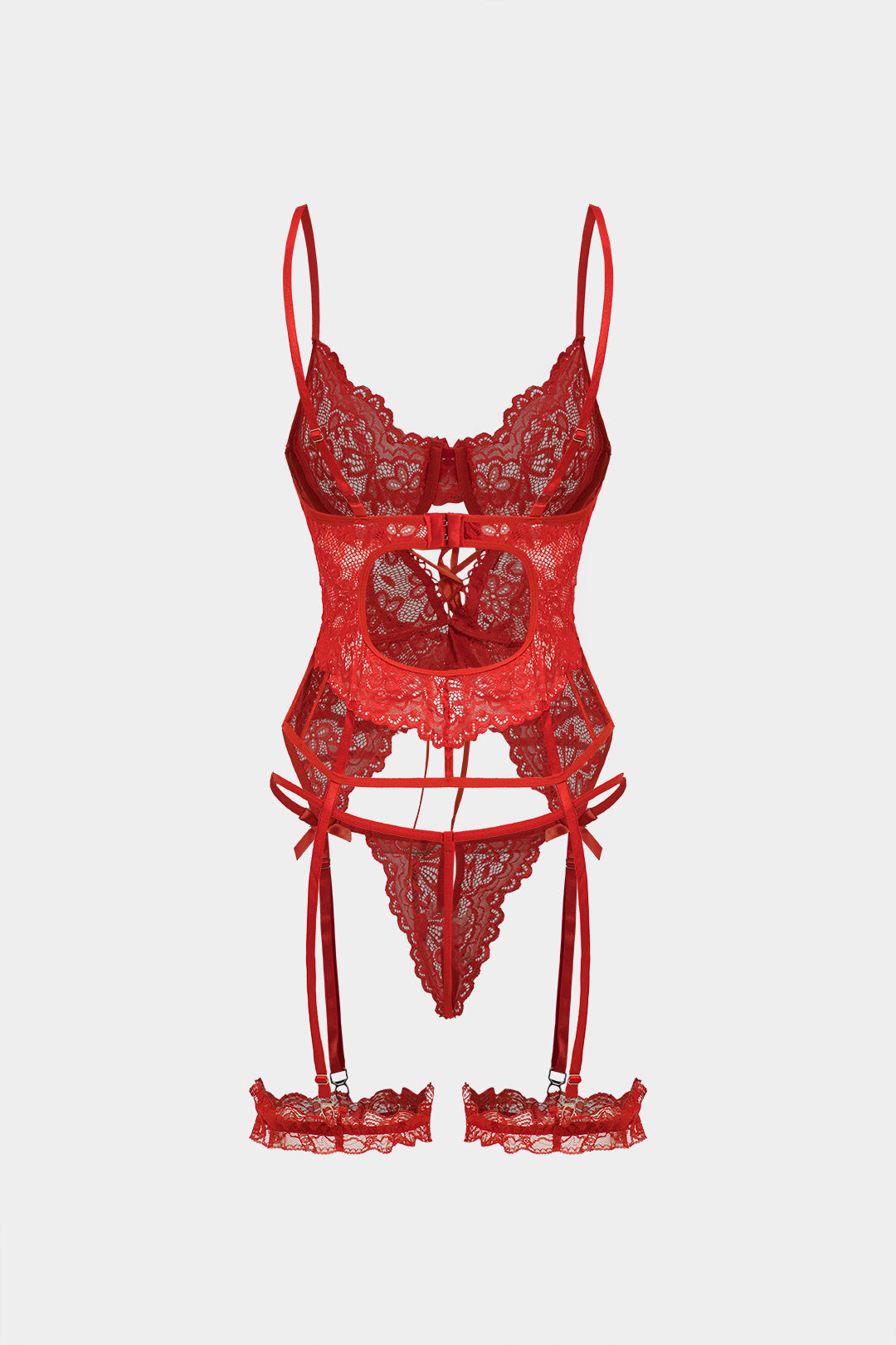 Cut Out Tie Front Backless Lingerie Garter Set