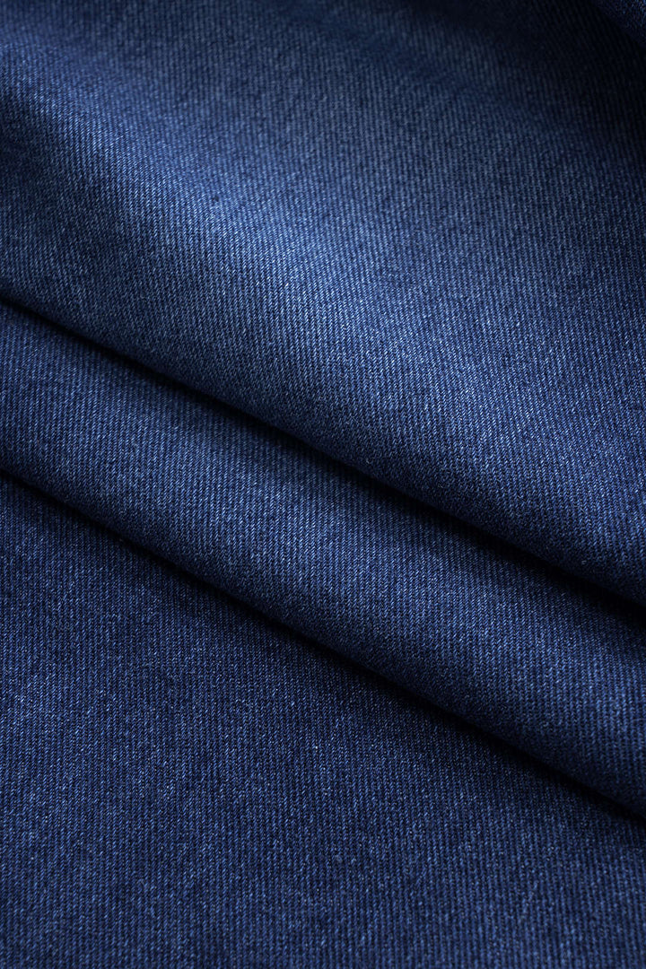 سترة زر الدنيم وبنطلون جينز عريض الساق طقم