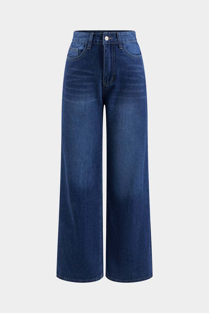 Denim Button Vest And Wide Leg Jeans Set