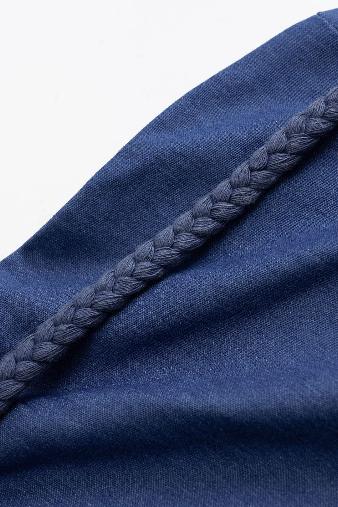 قميص أنبوب الدنيم وربط الجيب الأمامي جينز عريض الساق طقم