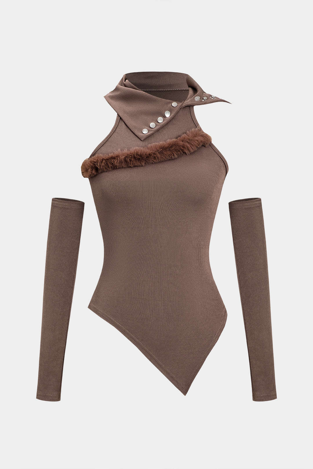بلوزة مرقعة من الفرو الصناعي مع قفازات