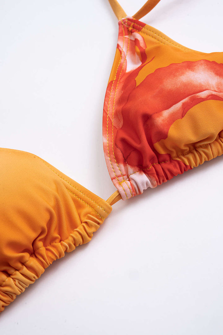 شبكة طباعة الأزهار ثلاثية الأزهار بيكيني ثلاث قطع طقم