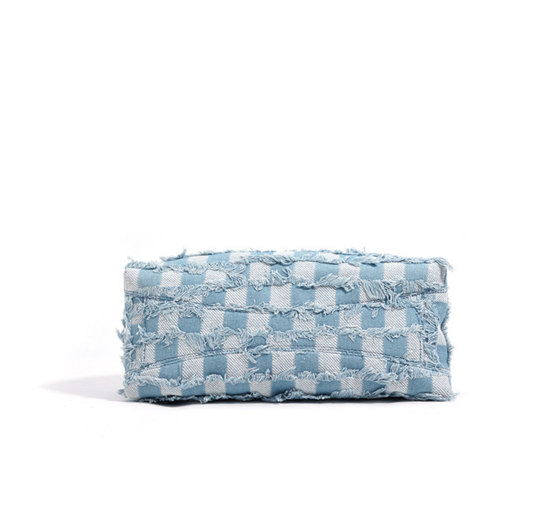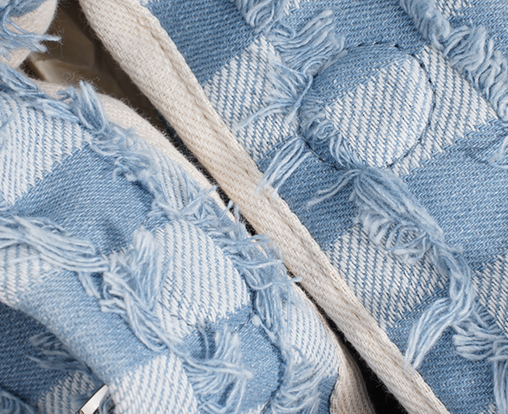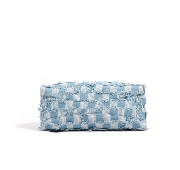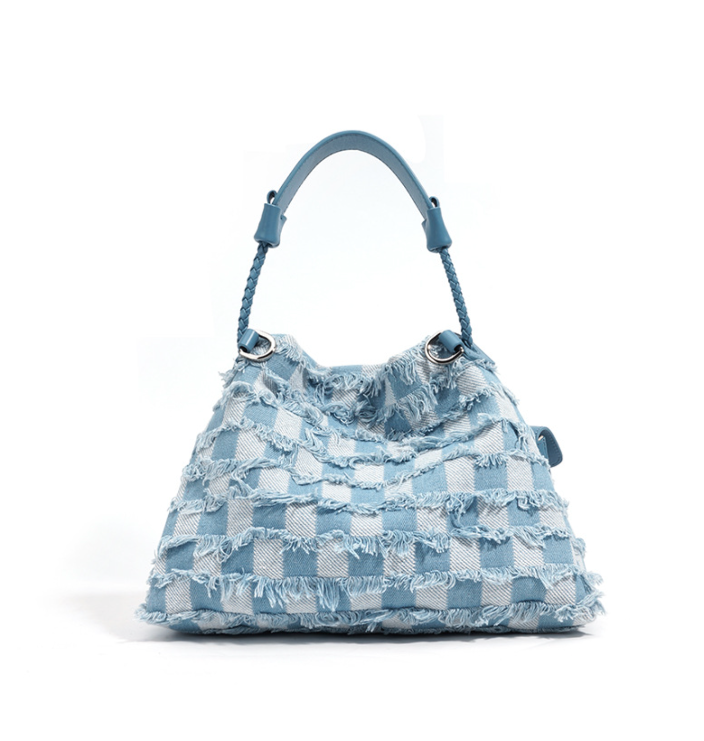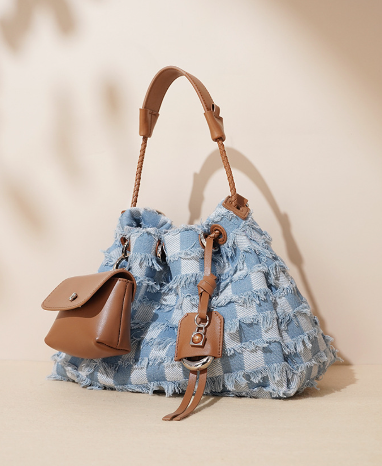 حقيبة دلو إنديغو، المصنوعة من قماش الدنيم المهترئ والمُزخرف بلمسات جلدية أنيقة، تُضفي لمسةً جريئةً ومريحة. تتميز بجيب صغير قابل للفصل ومقبض مضفر لإطلالةٍ أنيقة ومتعددة الاستخدامات.