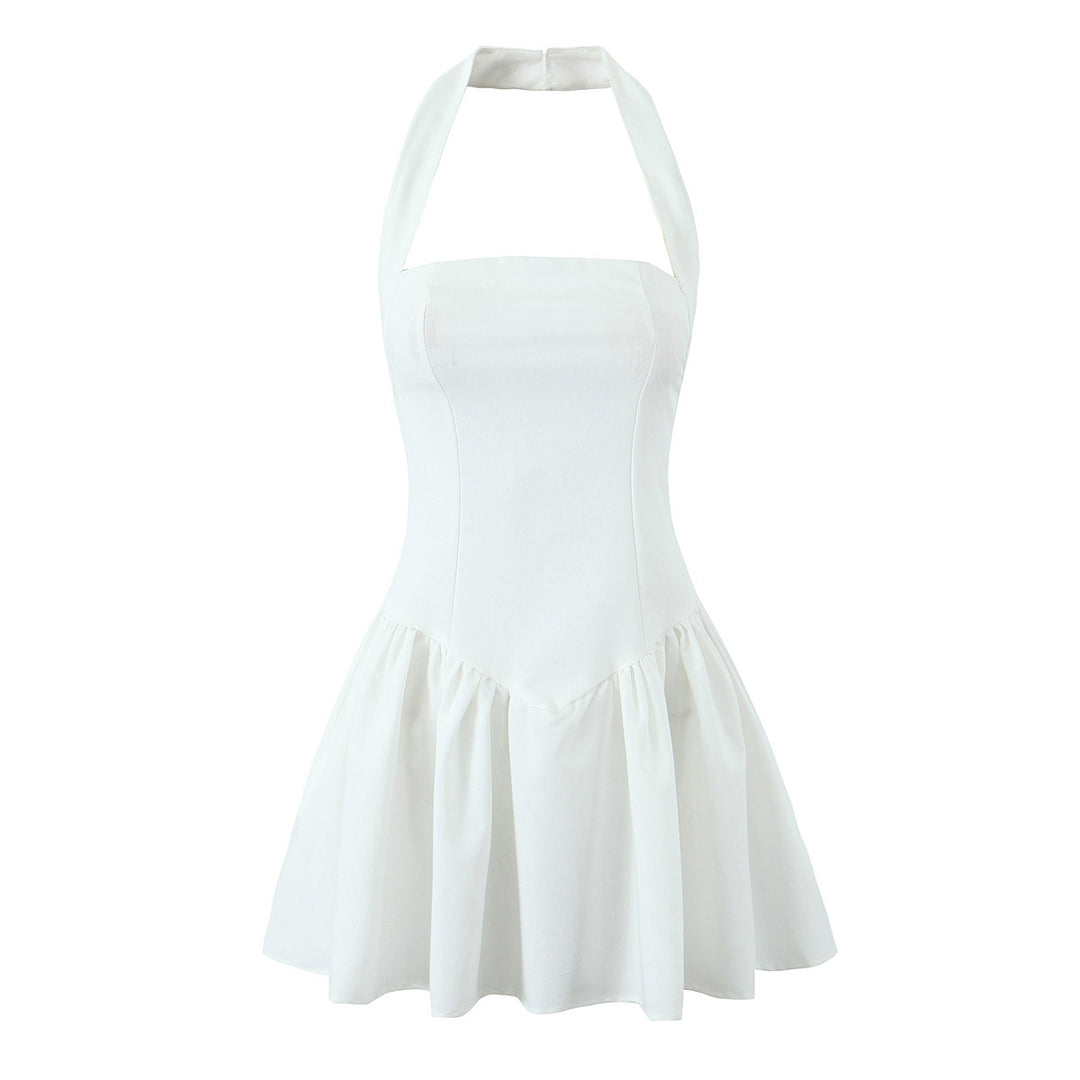 فستان قصير بدون أكمام وفتحة رقبة على شكل هالتر