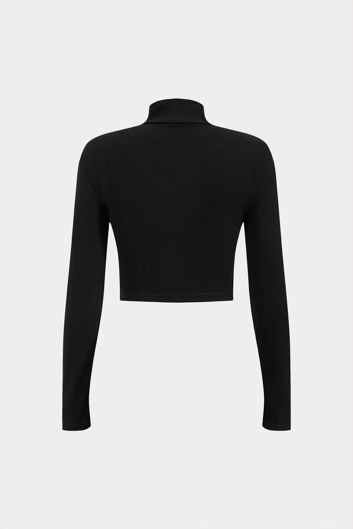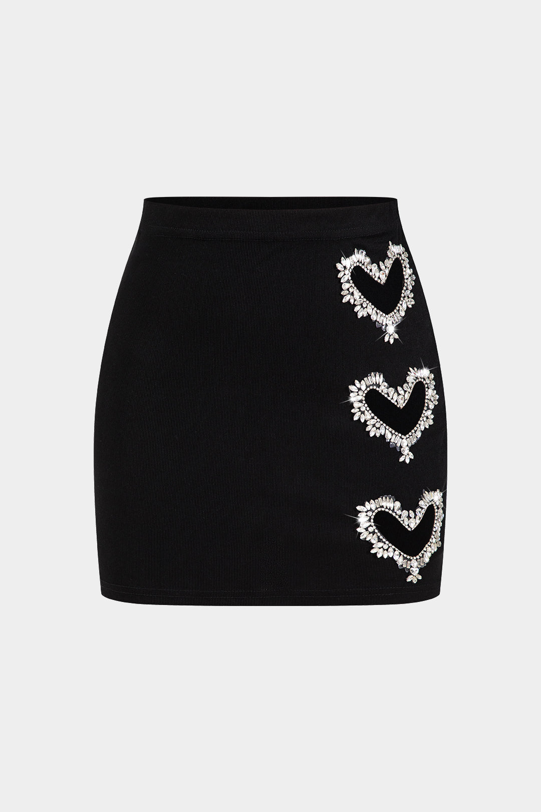 Heart Shape Rhinestone Mock Neck Long Sleeve Top And Skirt Set
